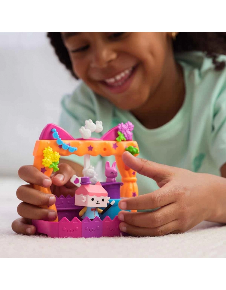 " REVELE UM BRINQUEDO SURPRESA: Abra um Dollhouse Delivery, assim como Gabby faz no show, para descobrir o acessório misterioso - um amuleto de cenoura - perfeito para aprimorar suas aventuras na casa de bonecas! Inclui: 1 varanda, 1 figura de caixa de bebê, 6 acessórios