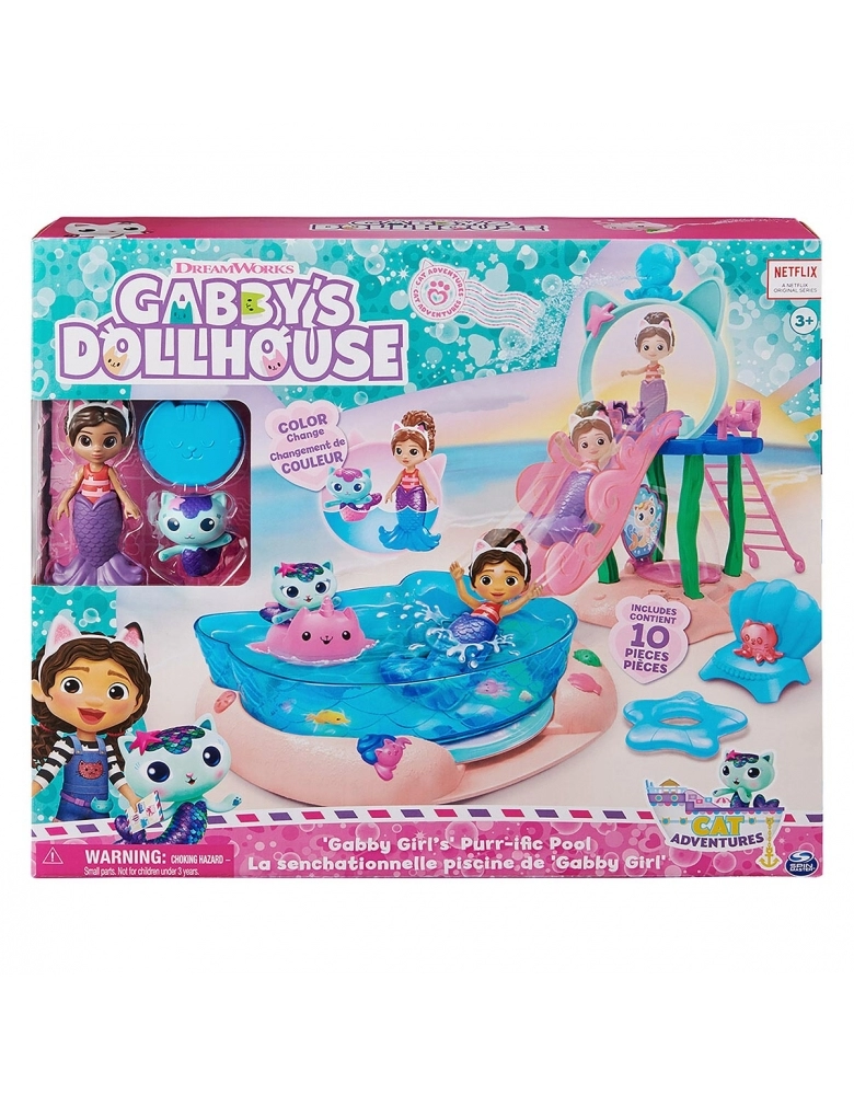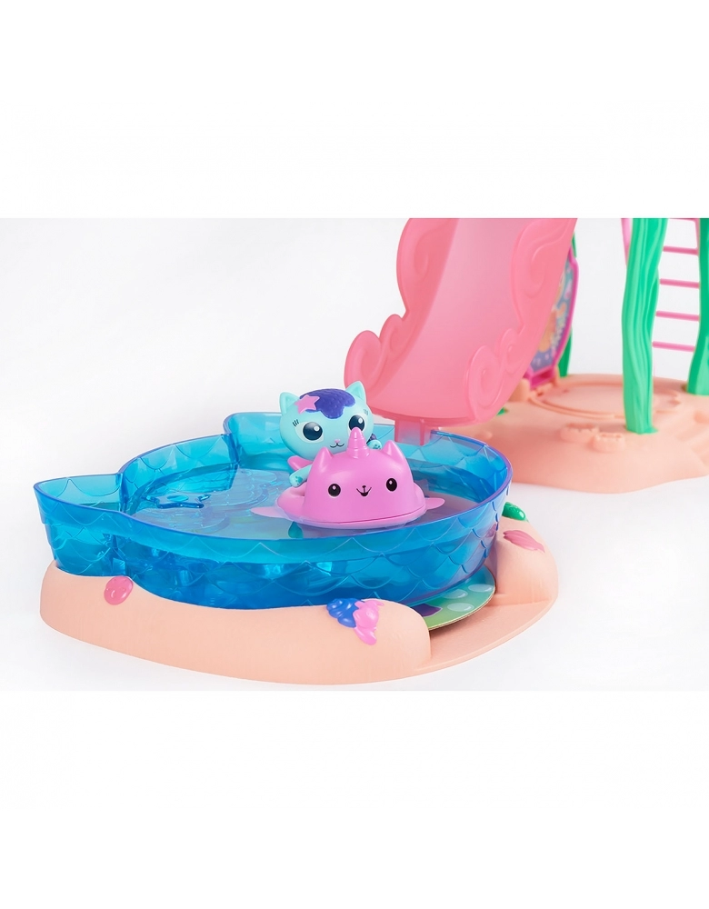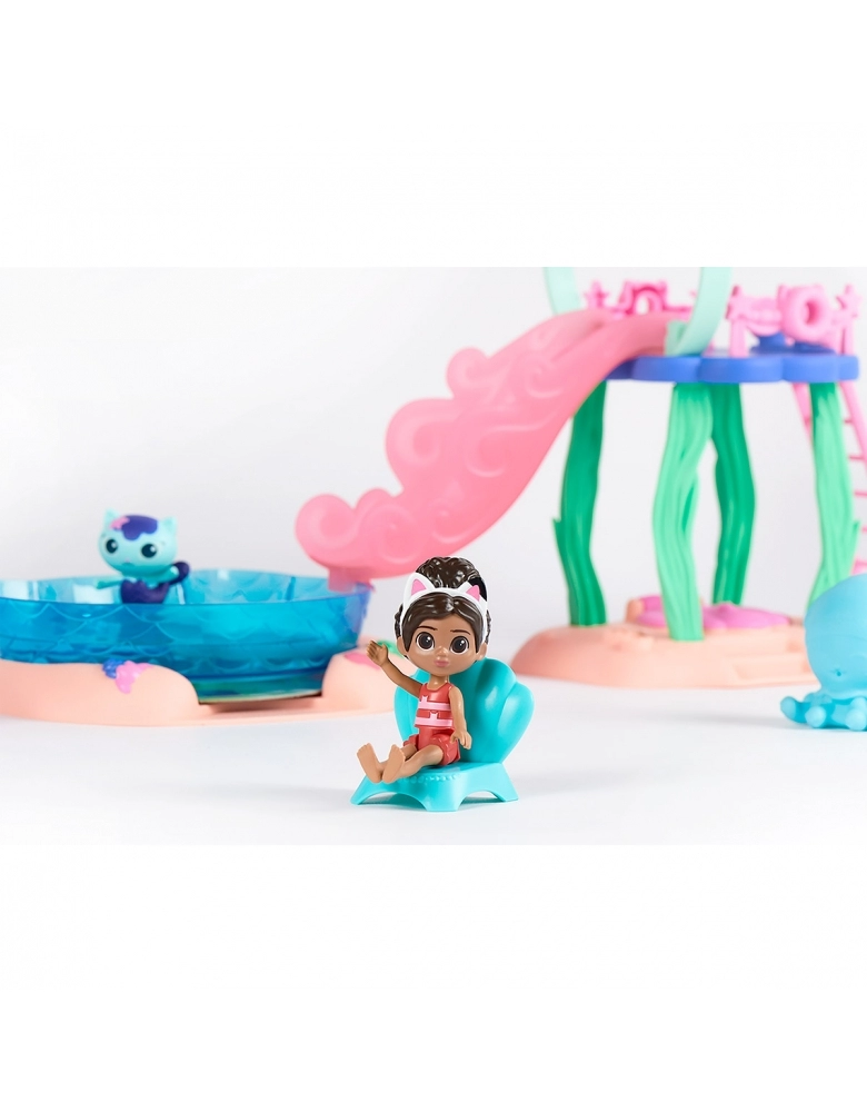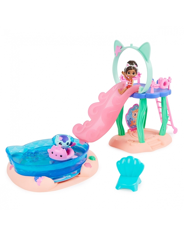 PLAYSET DA PISCINA: Divirta-se em um dia quente de verão brincando com o Playset da Piscina, com a Gabby e a MerCat,. Brinque de escorregar pelo tobogã, jogue esguichos de água com o polvo e mergulhe na piscina com formato de gato!