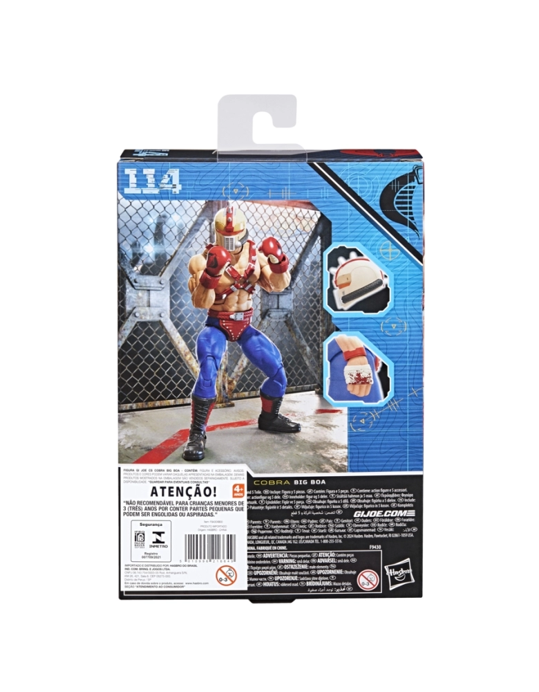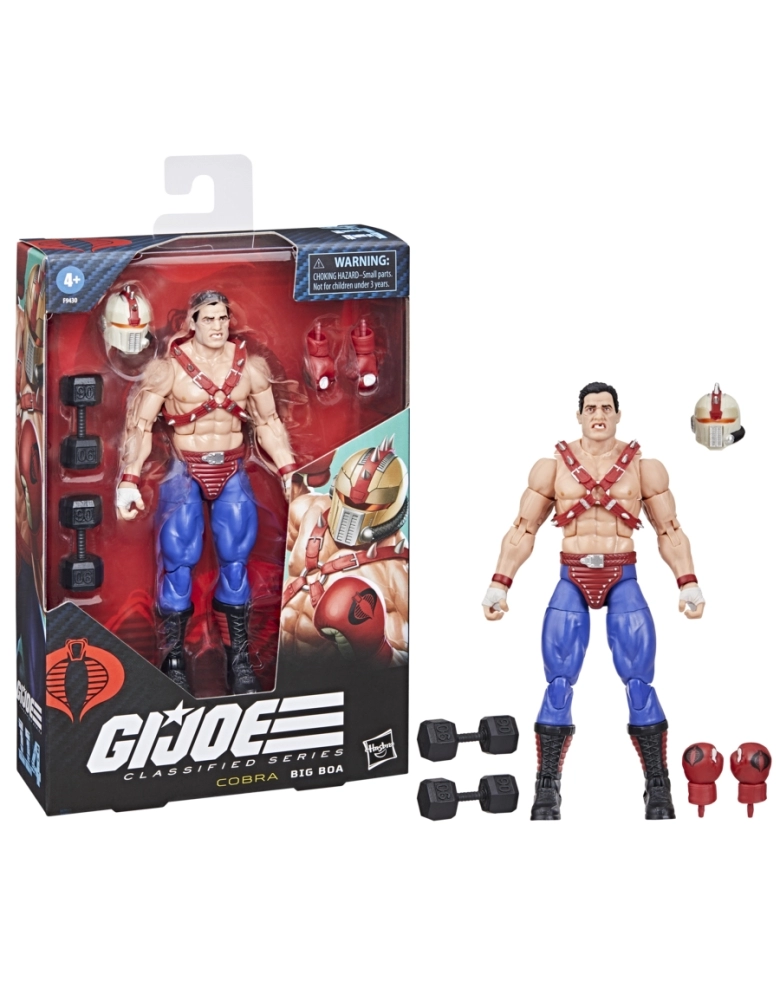 G.I. Joe é uma força de operações especiais altamente qualificada. Esses heróis extraordinariamente talentosos são selecionados por suas habilidades de elite e encarregados de defender o mundo contra a implacável organização criminosa Cobra, que se dedica à dominação mundial. Com coragem inabalável e determinação de aço, os corajosos membros de G.I. Joe estão preparados para perseguir e destruir os membros de Cobra em qualquer parte do planeta. Onde quer que haja problemas, G. I. Joe estará lá. Nova figura na linha G.I. Joe Classified Series pronta para a aventura, com vários pontos de articulação para várias poses. Essa figura do Big Boa contém 5 acessórios inspirados no personagem, incluindo capacete, 2 halteres e luvas de boxe removíveis para cobrir os nós dos dedos ensanguentados. Os soldados Cobra podem ser um grupo indisciplinado às vezes. Eles não são motivados por patriotismo, lealdade à unidade, honra ou senso de dever. É preciso um treinador brutal e insensível para colocá-los em forma para a luta, e Big Boa se encaixa perfeitamente nesse perfil. Ele tem a voz de um megafone, punhos do tamanho de perus congelados e a disposição de um urso raivoso. G.I. Joe and all related characters are trademarks of Hasbro.