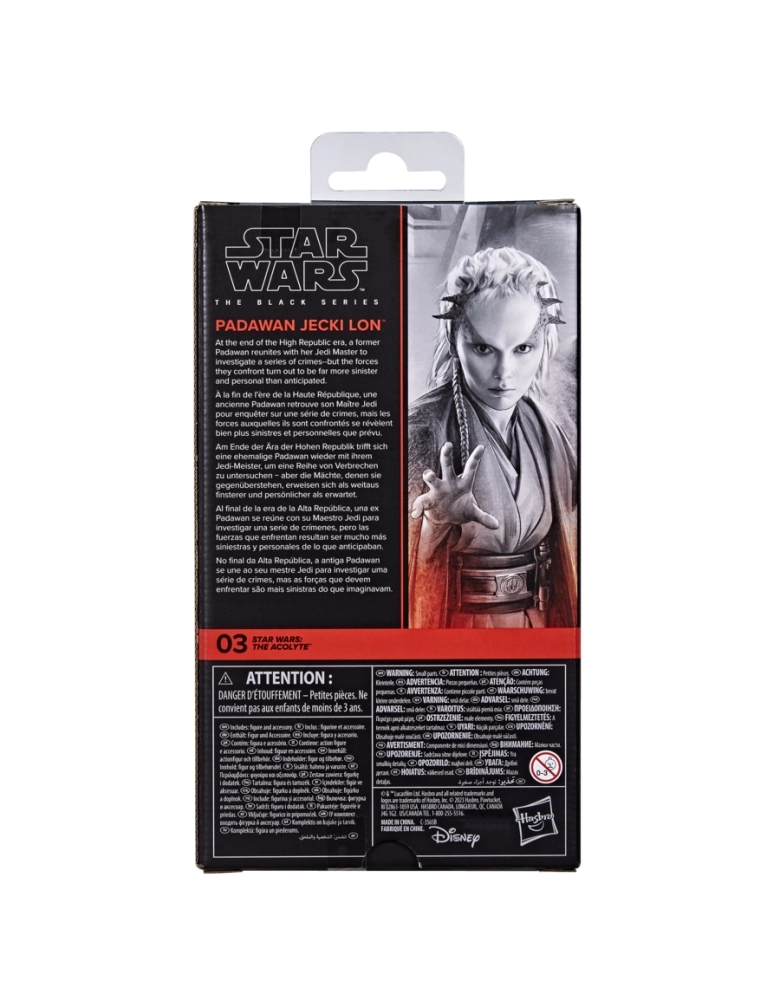 A linha Star Wars The Black Series inclui figuras de 15 cm, veículos e réplicas inspirados na galáxia de entretenimento de Star Wars, que inclui, ao longo de mais de 40 anos, filmes, séries de animação e quadrinhos Star Wars. Esta figura Star Wars é inspirada em Padawan Jecki Lon da série Star Wars: The Acolyte. Com atenção especial aos detalhes, a série The Black Series define o padrão de qualidade e realismo que os fãs de Star Wars desejam. Que a Força esteja com você! (Outros produtos vendidos separadamente. Sujeitos à disponibilidade.) Star Wars products are produced by Hasbro under license from Lucasfilm Ltd. Hasbro and all related terms are trademarks of Hasbro.