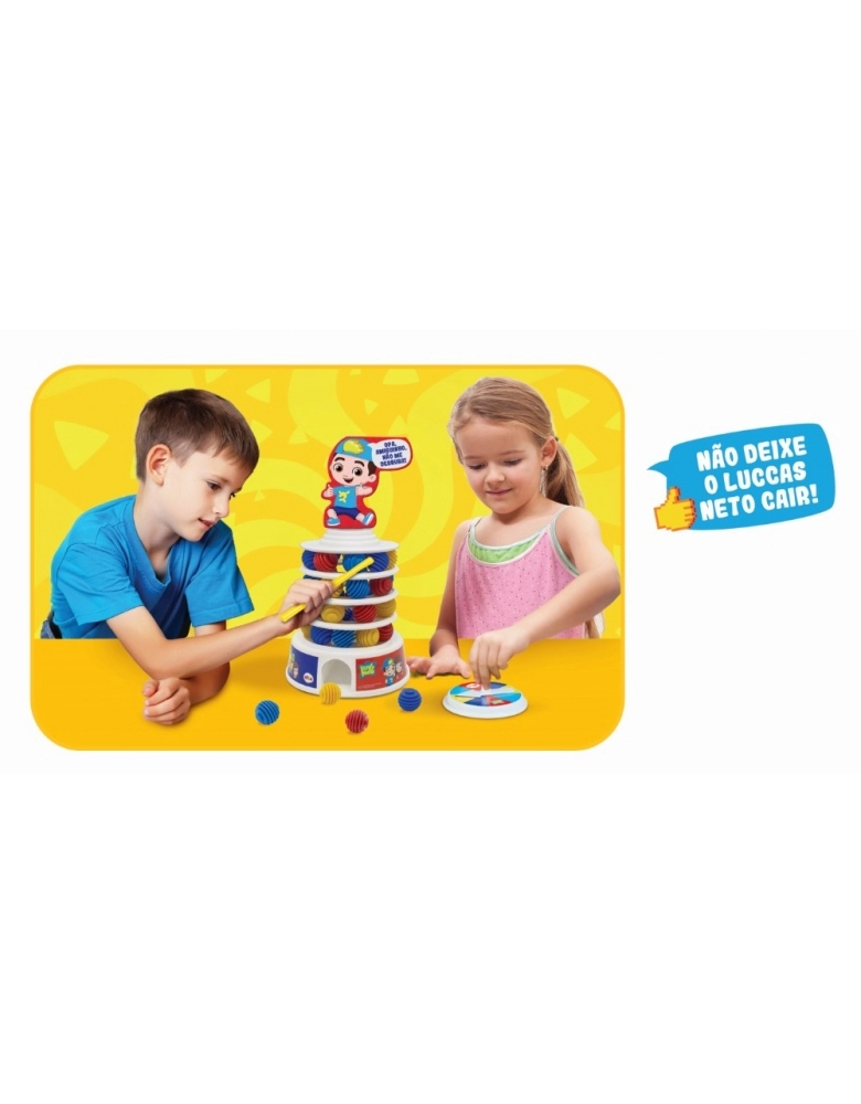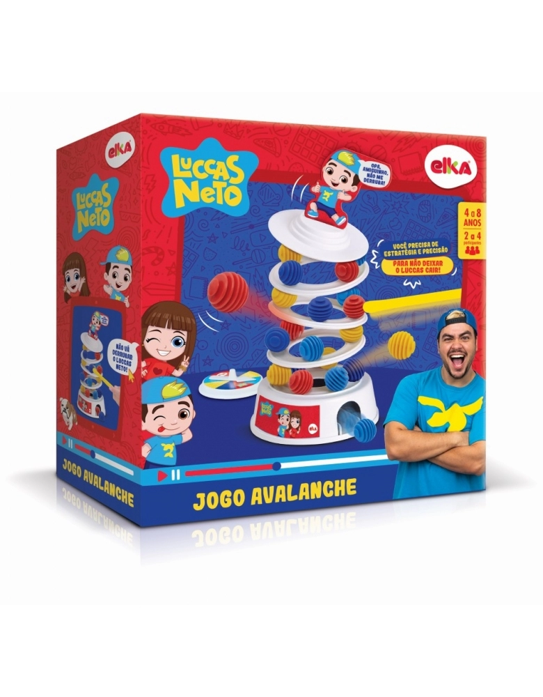 O desajeitado Luccas Neto foi parar em cima de uma torre! Ele tenta se equilibrar para não cair. O Avalanche é um jogo divertido que requer estratégia e precisão. São 36 bolinhas instáveis, empilhadas entre aros, formando uma torre. Sorteie na roleta a cor de bolinha que deverá empurrar, mas tome cuidado: a torre com o Luccas Neto não pode desmoronar!