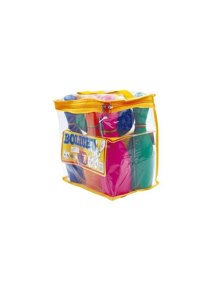 Conjunto de boliche para brincar e se divertir com toda a família. Diversão garantida. Polietileno de baixa para sopro A partir de 3 anos. Sacola. Brincar na presença de um adulto.