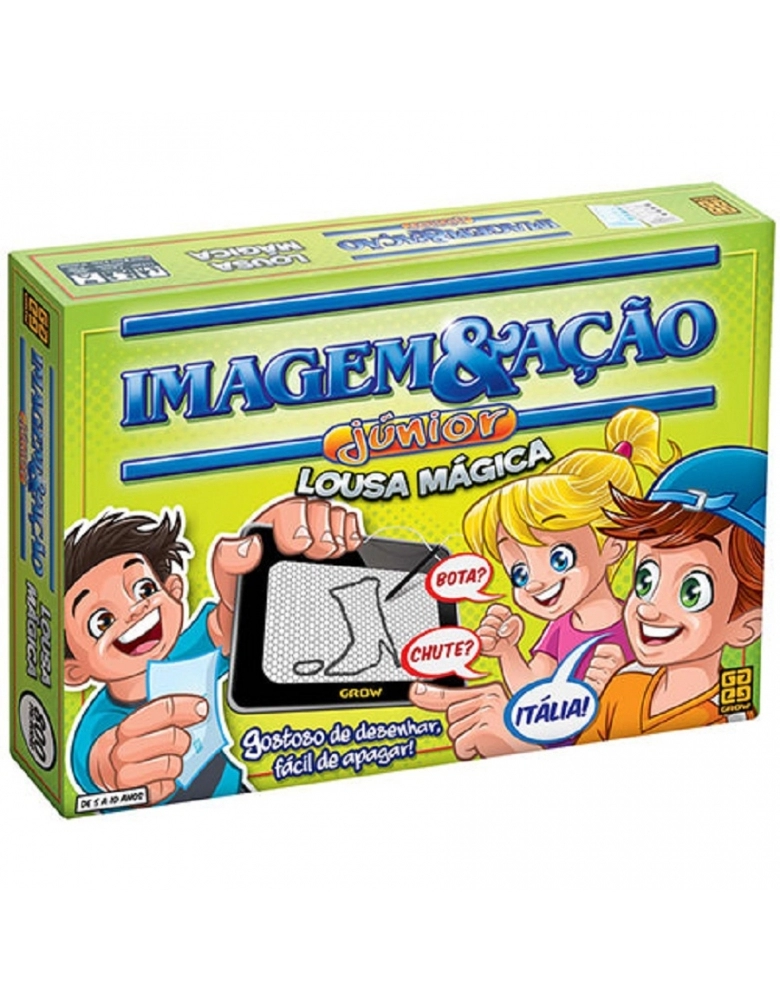 O Jogo vem com uma exclusiva Lousa Mágica, a qual torna possível a criança desenhar e apagar de uma forma muito fácil: batendo a lousa na palma da mão.