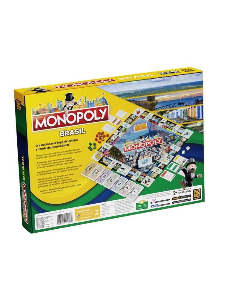 Chegou a hora de você mostrar suas habilidades em empreender e negociar dentro do território brasileiro. O Monopoly Brasil traz um design especial que vai proporcionar momentos empolgantes e surpreendentes entre amigos e familiares. Viaje de Roraima à Porto Alegre e ganhe dinheiro através de investimentos no ramo do turismo e da hotelaria. Mas fique atento, pois os dados e as cartas podem te colocar frente à frente com alguns imprevistos e atrapalhar os seus negócios, afinal, só um irá terminar o jogo bem sucedido. Analise as oportunidades, faça as escolhas certas e se arrisque para vencer!