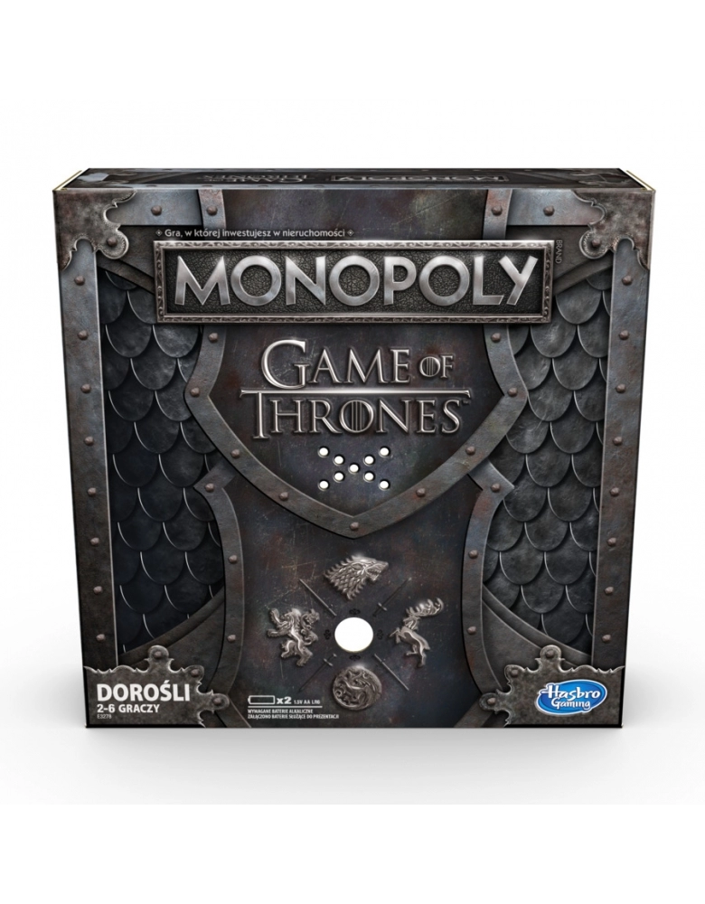 Monopoly Game of Thrones! O tabuleiro, a embalagem, os tokens, o dinheiro, as cartas chance e as peças do jogo são todos inspirados na popular série de TV da HBO. O jogador pode se movimentar pelo tabuleiro comprando quantas propriedades de Game of Thrones puder. Quanto mais o jogador possui, mais dinheiro pode cobrar dos oponentes. O último com dinheiro quando todos os outros jogadores faliram, vence! PRODUTO EM INGLÊS COM MANUAL EM PORTUGUÊS