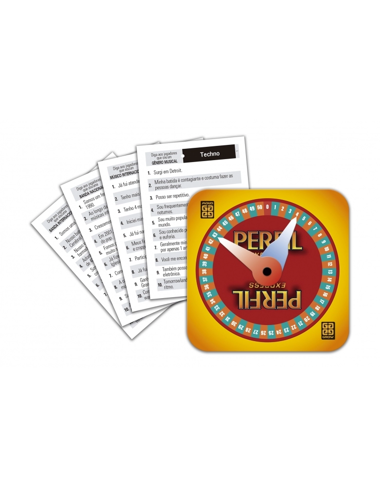 Perfil Express Música traz uma nova forma de jogar o clássico da Grow em uma versão com temática que engloba exclusivamente o mundo da música. O jogo traz cinco divertidas categorias que vão testar o seu conhecimento: gênero musical, músicos nacionais, músicos internacionais, bandas nacionais e bandas internacionais. Cada cartela possui 10 dicas que valem até 10 pontos. A primeira dica é menos reveladora, e as seguintes, de maneira progressiva, aumentam mais as chances de acerto. Quem nunca quis desafiar sua expertise musical com os amigos de uma maneira rápida e emocionante?
