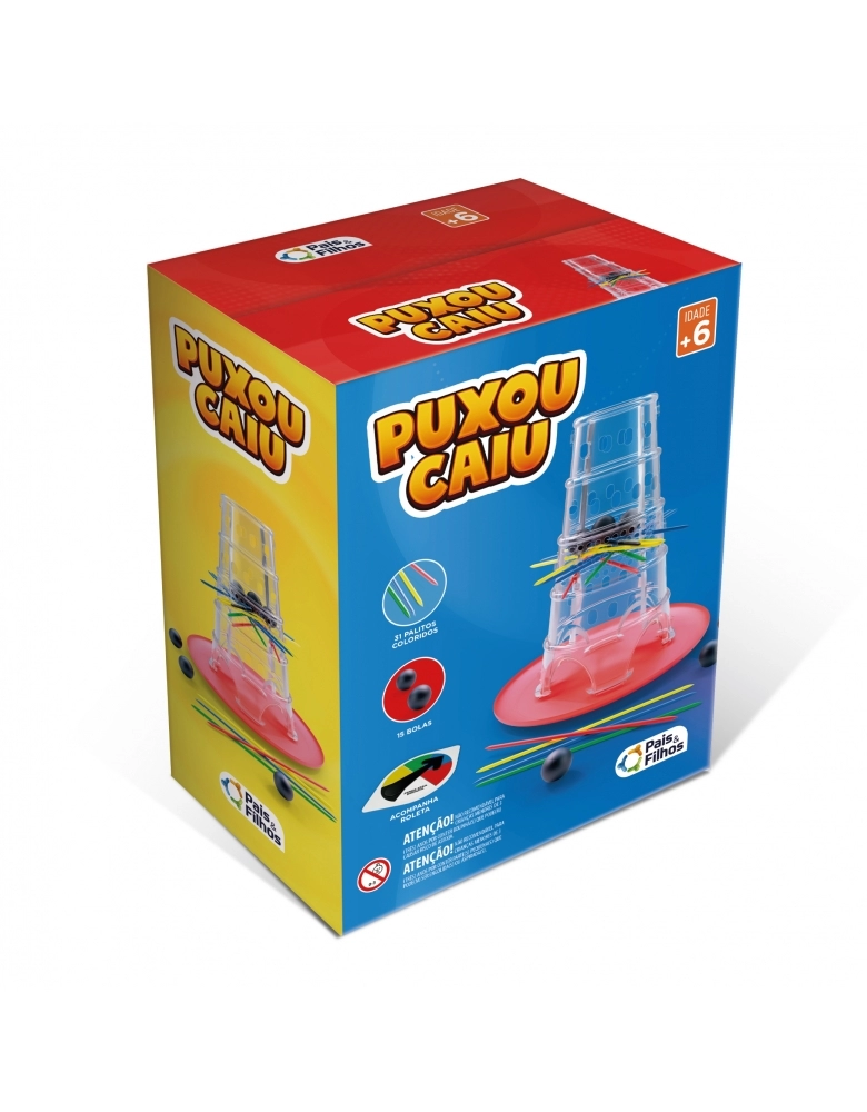Produzido em material leve e colorido, o Jogo Puxou Caiu veio para entreter, divertir e proporcionar momentos únicos para os jogadores, além de promover a destreza manual e estimular a paciência, coordenação motora, a agilidade, a atenção e cálculo mental na hora de contar os pontos.