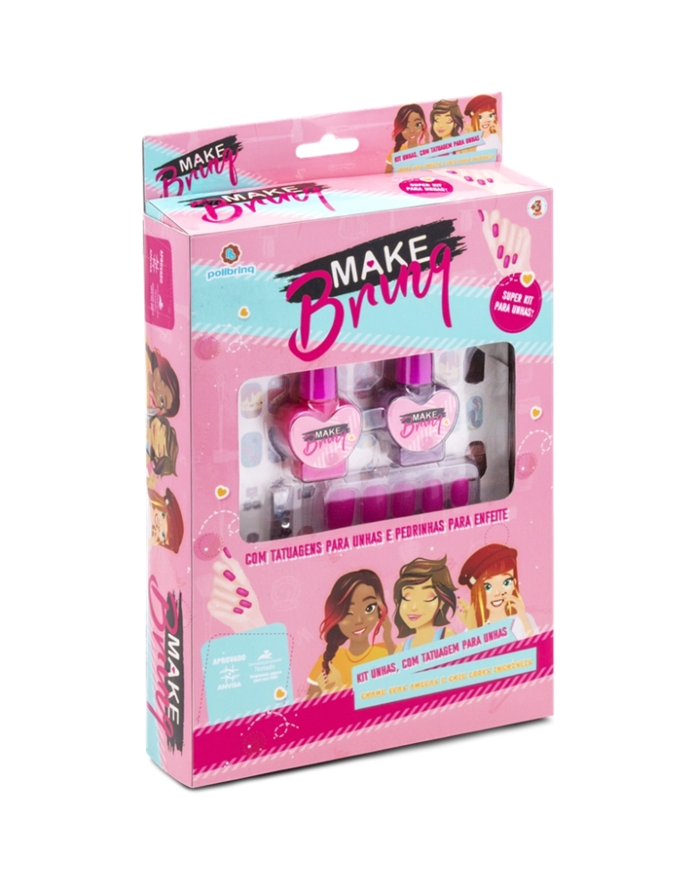 MAQUIAGEM INFANTIL KIT UNHAS COM TATUAGENS MAKEBRINQ