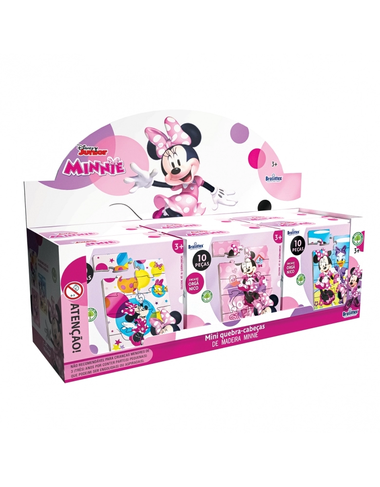Cada display conta com 6 unidades de caixinhas de Mini Quebra-Cabeca sortidas, e cada caixinha conta com um Mini Quebra-Cabeca de 10 pecas, feitas em MDF.