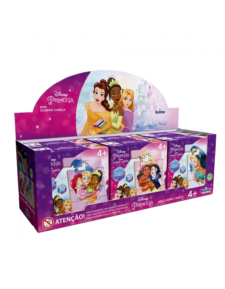 Cada display conta com 6 unidades de caixinhas de Mini Quebra-Cabeca sortidas, e cada caixinha conta com um Mini Quebra-Cabeca de 10 pecas, feitas em MDF.