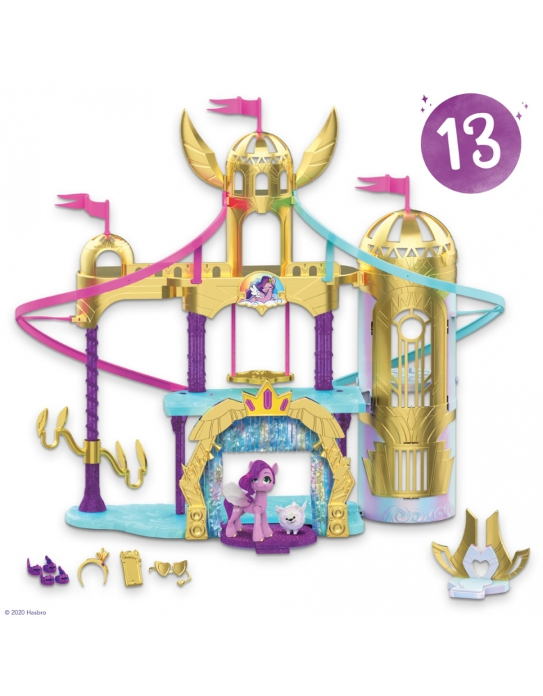 A Princesa Cadance irá se casar no castelo real e quer que você participe deste momento muito especial na vida dela! Ajude os noivos a se vestirem e prepare o castelo para receber os convidados (figuras vendidas separadamente) para esta incrível cerimônia. Este casamento real será inesquecível para todos de Ponyville! Playset MLP Castelo Real vem com uma figura da noiva Princesa Cadance, uma figura do noivo pony e incríveis acessórios.