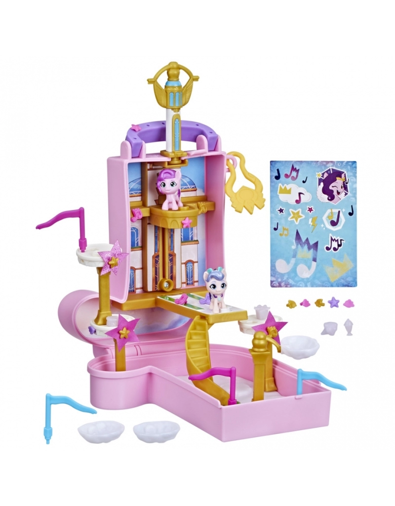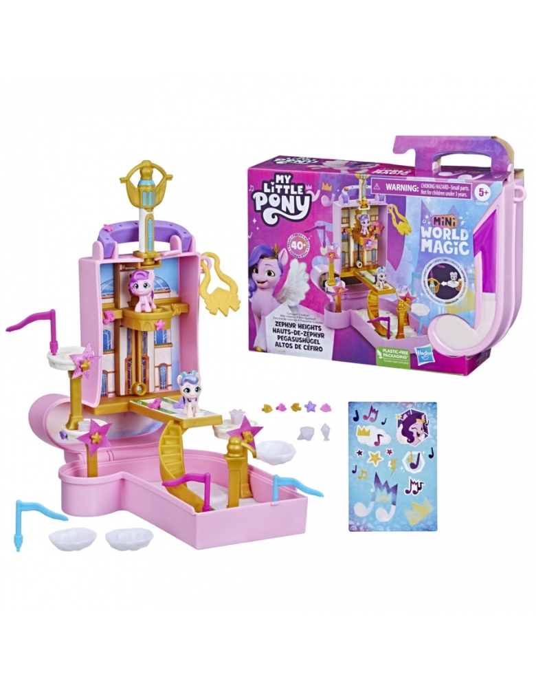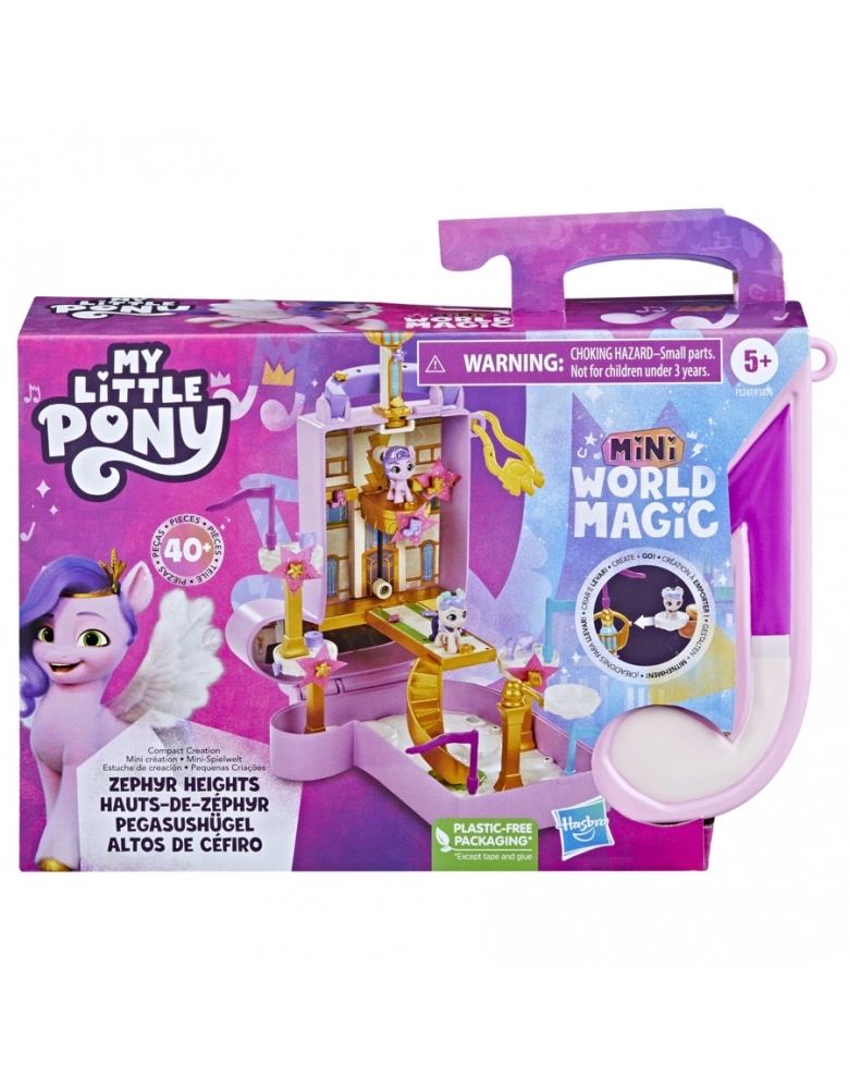 Construir um mundo mágico de miniamigos de Equestria! Os conjuntos My Little Pony Mini World Magic consistem em pequenos cenários e personagens adoráveis inspirados na série My Little Pony: Tell Your Tale. Este playset Compact Creation vem com 2 figuras adoráveis de 2,5 cm de altura: Princesa Pipp Petals e Rainha Haven! Vem com mais de 40 peças para personalizar um cenário em Zephyr Heights. As crianças montam o mundo com torres e nuvens, elevador real e podem pendurar estrelas de pano. Conectar acessórios e peças de cenário ao playset para criar um minimundo, e usar a folha de adesivos incluída para personalizar. É possível encher o recipiente de nuvem com água fria e colocar as guloseimas dentro para revelar a mudança de cor. Imagine encontrar lanches nas nuvens com Pipp e a Rainha Haven! Tudo vem dentro do estojo de transporte para diversão portátil. Este brinquedo é um ótimo presente de aniversário ou ocasiões especiais para crianças a partir dos 5 anos! My Little Pony and all related characters are trademarks of Hasbro.
