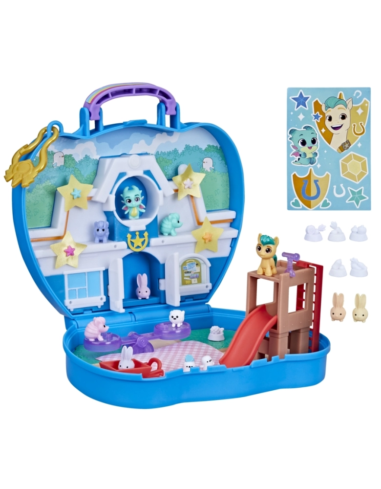 Construir um mundo mágico de miniamigos de Equestria! Os conjuntos My Little Pony Mini World Magic consistem em pequenos cenários e personagens adoráveis inspirados na série My Little Pony: Contos Incríveis. Este kit Compact Creation vem com 2 figuras adoráveis de 2,5 cm de altura! Vem com 40 peças para personalizar um cenário. As crianças montam o mundo com torres e nuvens, elevador real e podem pendurar estrelas de pano. Conectar acessórios e peças de cenário ao brinquedo para criar um minimundo, e usar a folha de adesivos incluída para personalizar. É possível encher o recipiente com água fria e colocar os acessórios dentro para revelar a mudança de cor! Tudo vem dentro do estojo de transporte para diversão portátil. Este brinquedo é um ótimo presente de aniversário ou ocasiões especiais para crianças a partir dos 5 anos! Os brinquedos Mini World Magic se conectam para formar o incrível mundo de Equestria (vendidos separadamente, sujeitos à disponibilidade). É um ótimo presente de aniversário ou festas para meninas e meninos a partir dos 5 anos. My Little Pony and all related characters are trademarks of Hasbro.