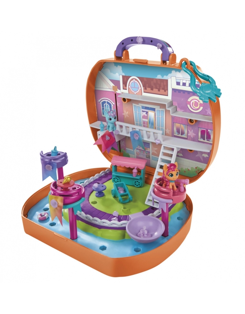 Construir um mundo mágico de miniamigos de Equestria! Os conjuntos My Little Pony Mini World Magic consistem em pequenos cenários e personagens adoráveis inspirados na série My Little Pony: Tell Your Tale. Este playset Compact Creation vem com 2 figuras adoráveis de 2,5 cm de altura: Sunny Starscout e Choco Cozy! Vem com mais de 40 peças para personalizar um cenário. As crianças montam o mundo com torres e nuvens, elevador real e podem pendurar estrelas de pano. Conectar acessórios e peças de cenário ao playset para criar um minimundo, e usar a folha de adesivos incluída para personalizar. É possível encher o recipiente com água fria e colocar as joias dentro para revelar a mudança de cor, para imaginar encontrar tesouros! Tudo vem dentro do estojo de transporte para diversão portátil. Este brinquedo é um ótimo presente de aniversário ou ocasiões especiais para crianças a partir dos 5 anos! My Little Pony and all related characters are trademarks of Hasbro.