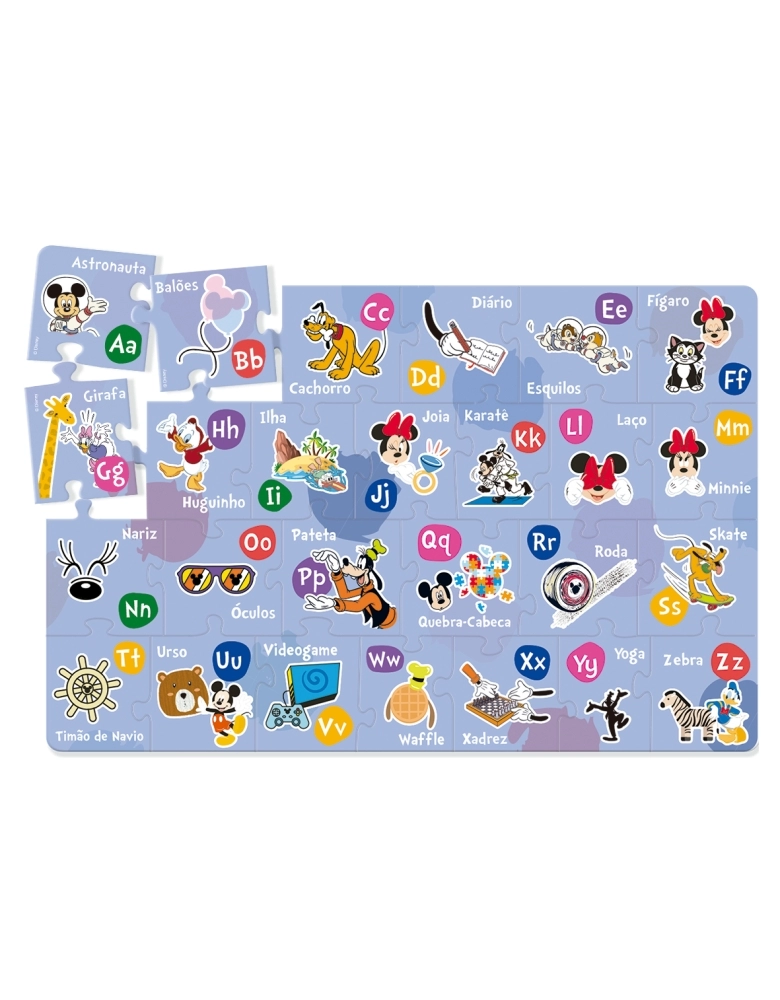 Divertido quebra-cabeça com letras do alfabeto. Brincando de montar o quebra-cabeça, a criança aprende a ordem alfabética e associa as letras do alfabeto enquanto se diverte!
