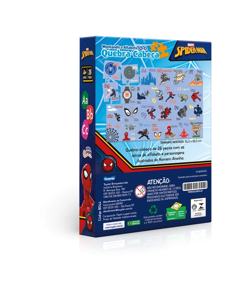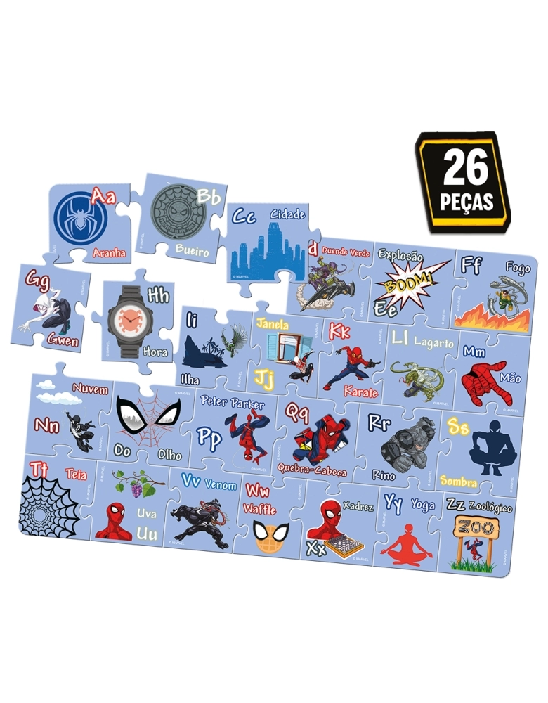 Divertido quebra-cabeça com letras do alfabeto. Brincando de montar o quebra-cabeça, a criança aprende a ordem alfabética e associa as letras do alfabeto enquanto se diverte!