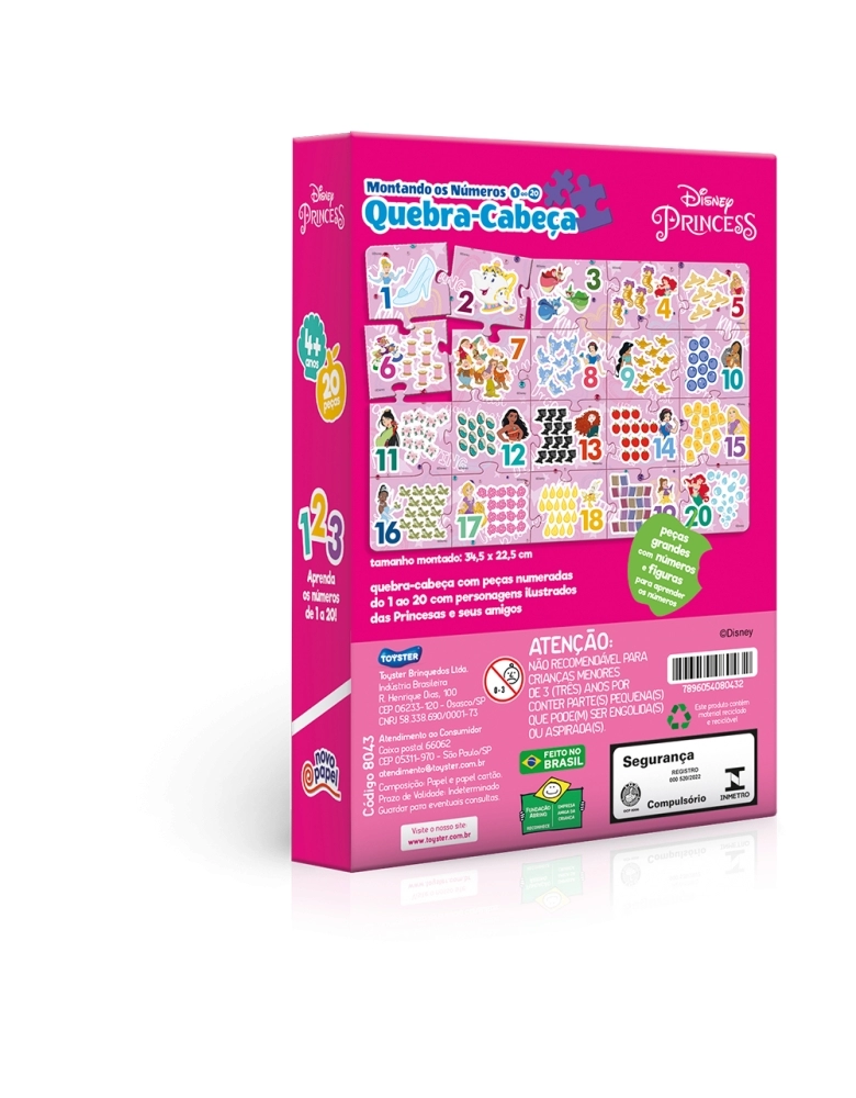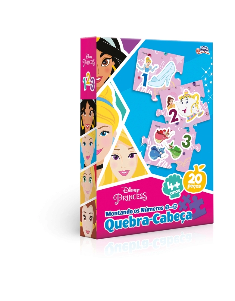 Divertido quebra-cabeça com números para a criança aprender a contar, a ordenar os números e a associar as quantidades de objetos e personagens!