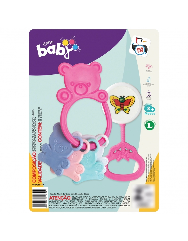 Lindo chocalho colorido. Pode ser utilizado também em berços. Cartela mordedor urso com chocalho Disco. Diversão garantida