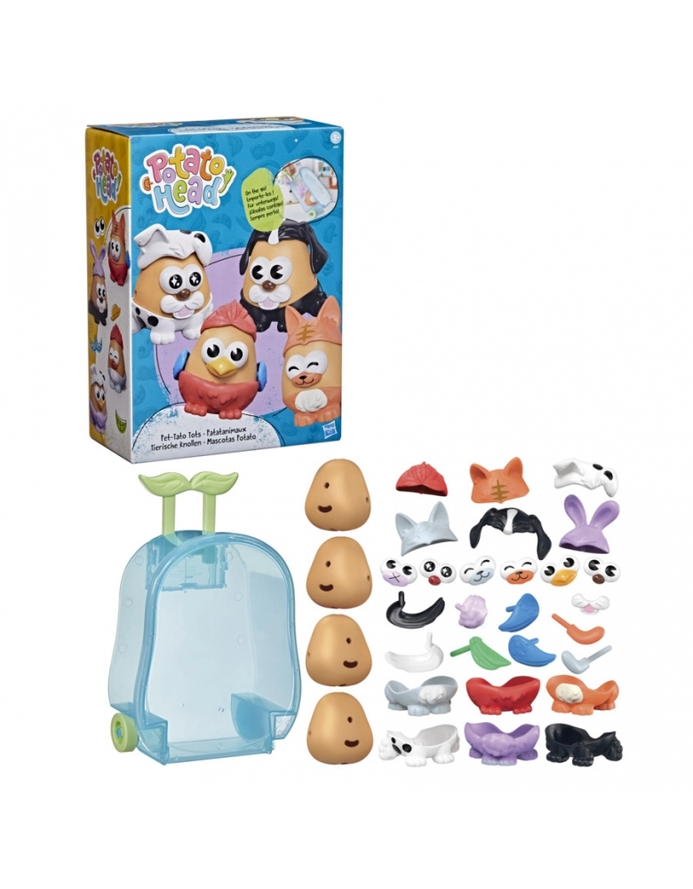 Descubra muitos animais misturados e combinados com o conjunto Potato Head Pet-Tato Tots! As crianças vão adorar criar animais fofos e personagens divertidos com 4 corpos de batata pequenos e 27 partes e peças de animais de estimação. Há peças suficientes para criar 2 gatos diferentes, 2 cachorros diferentes, um pássaro e um coelho — mas a verdadeira diversão começa quando as crianças começam a misturar e combinar para criar seus próprios amigos pets criativos! Quando a brincadeira acabar, guarde todas as peças no estojo com rodinhas.