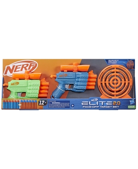O kit com alvos Face Off Nerf inclui 2 lançadores Nerf Elite 2.0 Prospect QS-4, alvo e 12 dardos Nerf Elite. Ótimo brinquedo para as crianças se divertirem ao ar livre ou dentro de casa. Cada lançador Nerf lança 4 dardos seguidos. Possuem mira e carregador de preparo. Vem com lançadores de cores diferente. Basta escolha uma cor e desafiar os amigos para marcar mais pontos. Inclui alvo que pode ser usado para praticar a mira ao ar livre ou dentro de casa. Contém 12 dardos oficiais Nerf Elite de espuma, testados e aprovados para performance e qualidade. É um ótimo presente para meninas e meninos que gostam de brincadeiras e exercícios físicos. Os lançadores Nerf são incríveis brinquedos para as crianças se divertirem em atividades físicas. Recomenda-se o uso de óculos, não incluídos. Não requer pilhas. Os estilos variam. Nerf e todas as propriedades relacionadas são marcas registradas da Hasbro.