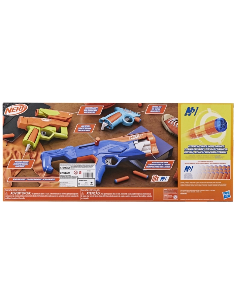 A Nerf eleva o nível do seu jogo com lançadores de dardos Nerf N Series de alto desempenho e dardos Nerf N1! Agora, os aventureiros podem encontrar o lançador certo para combinar com seu alto nível de habilidade Nerf em jogos dentro e fora de casa. A Nerf lança a nova geração de dardos de espuma com os dardos Nerf N Series N1, proporcionando EXTREMA PRECISÃO, VELOCIDADE e ALCANCE! O kit Nerf N Series Gear Up Pack inclui 3 lançadores diferentes e 2 acessórios para criar 10 estilos diferentes. Muita diversão e versatilidade com este kit que inclui 18 dardos de espuma Nerf N1. Os lançadores Flex e Dealer lançam 1 dardo. O lançador Wielder lança 4 dardos seguidos. O apoio se encaixa em 2 lançadores. A mira se encaixa nos 3 lançadores. Os lançadores Nerf N Series são compatíveis apenas com dardos nerf N1. Recomenda-se o uso de óculos, não incluídos. NERF and HASBRO and all related trademarks and logos are trademarks of Hasbro, Inc.