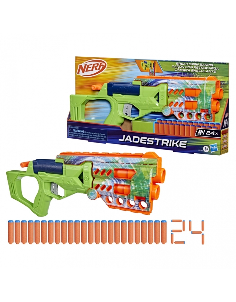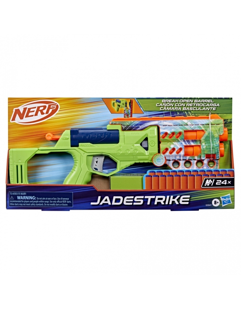 A marca Nerf leva seu jogo a outro nível com lançadores de dardos de alto desempenho da Série N e dardos Nerf N1! Você já tem as habilidades de um verdadeiro batalhador Nerf, agora tem também o lançador e os dardos para alcançar vantagem superior em brincadeiras dentro ou fora de casa. Dos criadores do dardo de espuma, a marca Nerf apresenta a próxima evolução em lançadores de dardos com os dardos Nerf N1, oferecendo EXTREMA PRECISÃO, VELOCIDADE e ALCANCE! O lançador Nerf N Series Jadestrike possui carregamento por abertura para um jeito divertido de inserir os dardos. Tem capacidade para 2 dardos e dispara 1 por vez. Vem com 24 dardos Nerf N1, o suficiente para várias recargas. Possui 2 trilhos táticos. Prepare-se para a batalha em passos simples: abra o lançador, carregue 2 dardos, feche, puxe o cabo de armar e puxe o gatilho para disparar.