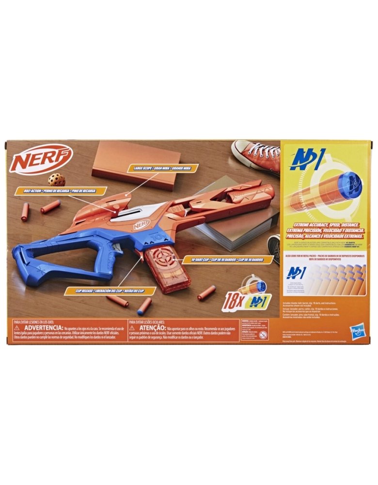 A Nerf eleva o nível do seu jogo com lançadores de dardos Nerf N Series de alto desempenho e dardos Nerf N1! Agora, os aventureiros podem encontrar o lançador certo para combinar com seu alto nível de habilidade Nerf em jogos dentro e fora de casa. A Nerf lança a nova geração de dardos de espuma com os dardos Nerf N Series N1, proporcionando EXTREMA PRECISÃO, VELOCIDADE e ALCANCE! O lançador de dardos Nerf N Series Pinpoint é projetado para precisão. O lançador com pino recarga vem com clip de 10 dardos e inclui 18 dardos de espuma Nerf N1. Basta carregar o clip, encaixar o clip no lançador, mover o pino para trás e para frente e ativar a alavanca de disparo para lançar um dado. Os lançadores Nerf N series são compatíveis apenas com dardos Nerf N1. Recomenda-se o uso de óculos, não incluídos. NERF and HASBRO and all related trademarks and logos are trademarks of Hasbro, Inc.