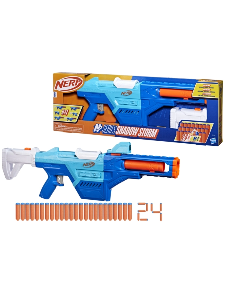A Nerf eleva o nível do seu jogo com lançadores de dardos Nerf N Series de alto desempenho e dardos Nerf N1! Agora, os aventureiros podem encontrar o lançador certo para combinar com seu alto nível de habilidade Nerf em jogos dentro e fora de casa. A Nerf lança a nova geração de dardos de espuma com os dardos Nerf N Series N1, proporcionando EXTREMA PRECISÃO, VELOCIDADE e ALCANCE! 6 estilos diferentes de lançadores com o lançador Nerf N Series Shadow Storm e 3 acessórios incluídos. O apoio, tubo frontal e mira são fáceis de remover para criar diversas configurações. O lançador Shadow Storm inclui 24 dardos de espuma N1 Nerf e clip interno para 8 dardos. Os lançadores Nerf N Series são compatíveis apenas com dardos nerf N1. Recomenda-se o uso de óculos, não incluídos. NERF and HASBRO and all related trademarks and logos are trademarks of Hasbro, Inc.