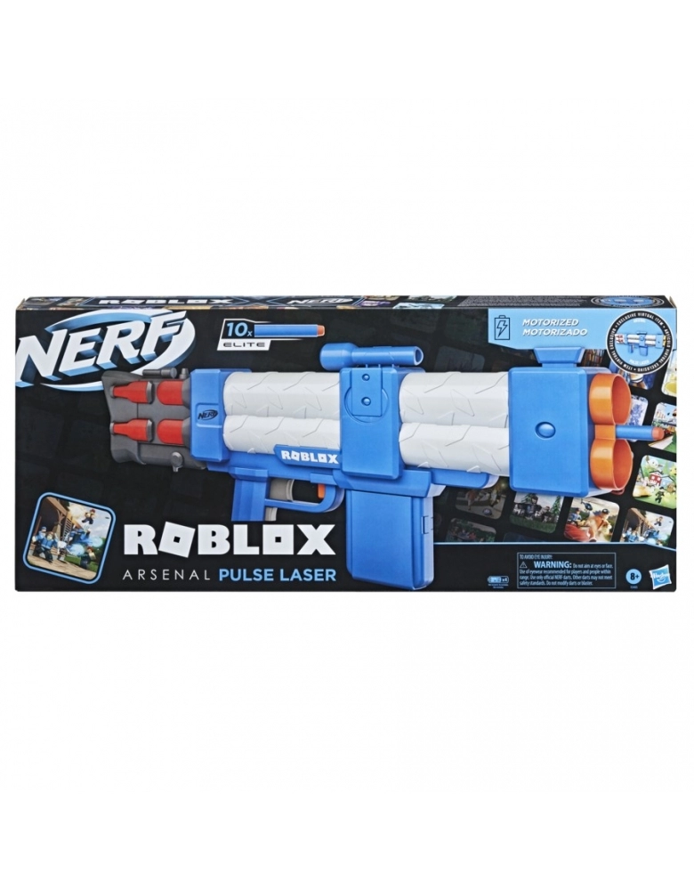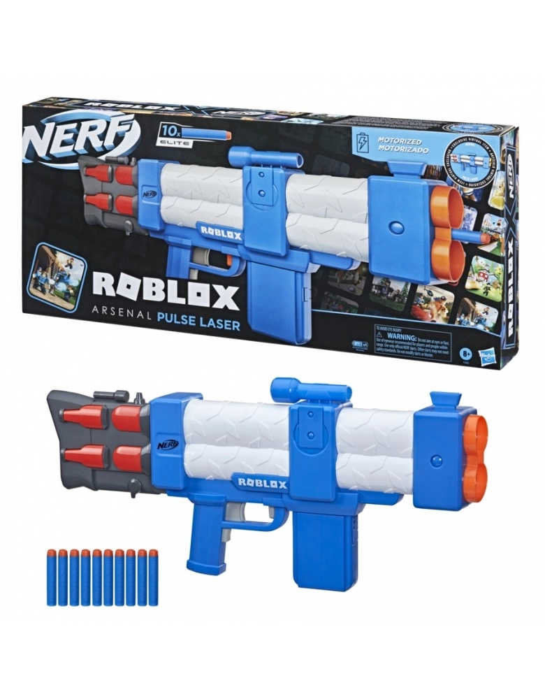 Nerf Roblox Arsenal: lançador de dardos Pulse Laser é inspirado no jogo Arsenal de Roblox! O lançador inclui um código especial que permite resgatar um item virtual exclusivo em Roblox!* O lançador é motorizado e vem com um clip removível de 10 dardos e 10 dardos oficiais Nerf Elite. Lança 10 dardos seguidos antes que seja necessário recarregar! Para começar a brincar, basta carregar o clip, manter pressionado o botão turbo e pressionar a alavanca de disparo para lançar um dardo. Os dardos de espuma oficiais Nerf Elite são testados e aprovados para desempenho e qualidade, ótimos para jogos em lugares abertos ou fechados.