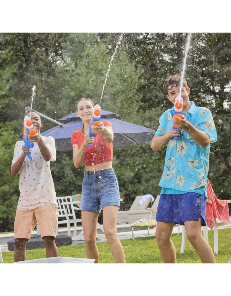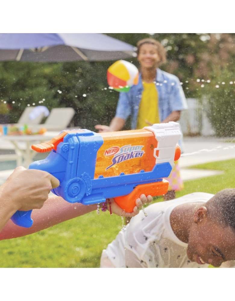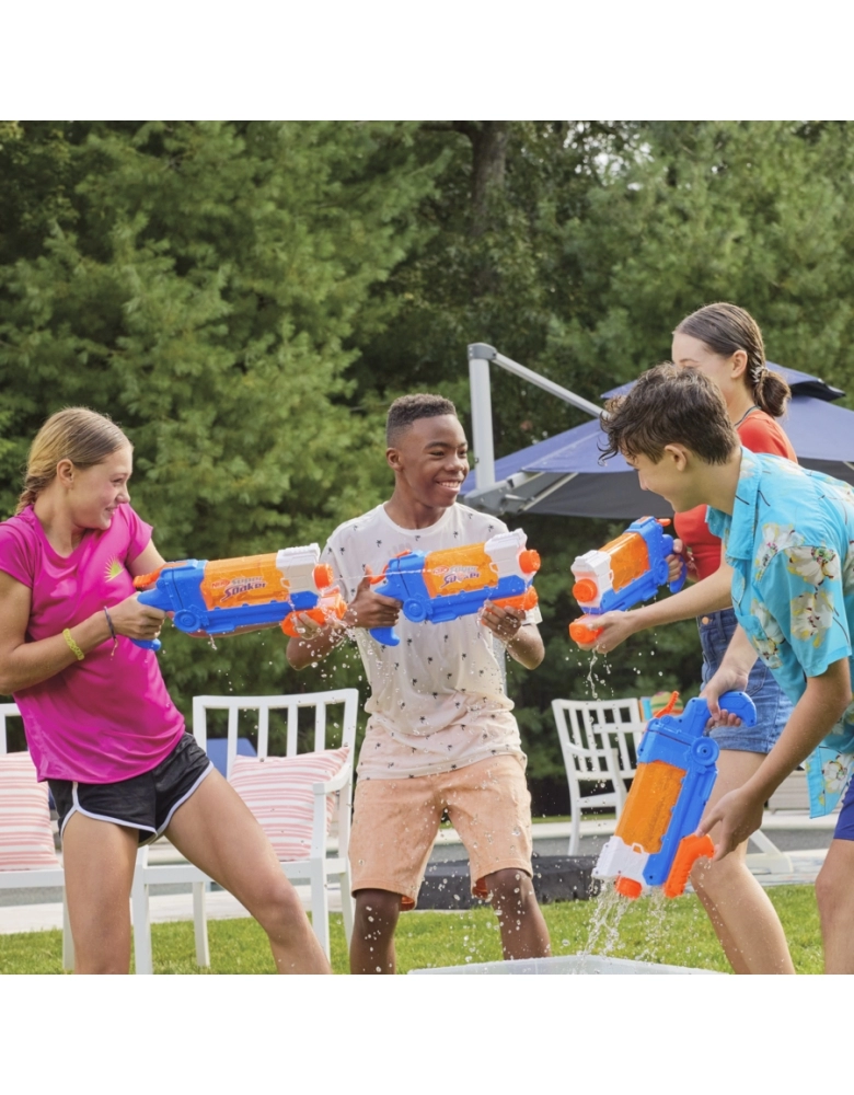 O lançador de água Nerf Super Soaker Flip Fill apresenta 4 estilos diferentes de jatos de água, para que você possa escolher a maneira de molhar amigos e familiares na diversão aquática do quintal! Basta girar o bocal para liberar um único jato estreito, lançar um grande jato único, molhar com um dilúvio de jato disperso ou encharcar com um spray em leque angular. Mire e bombeie para frente e para trás para começar a diversão aquática. Possui design de preenchimento rápido para que as crianças possam brincar muito mais ao ar livre! Reservatório de 887 ml Os lançadores de água Nerf Super Soaker são uma excelente atividade de água ao ar livre para todos que gostam de brincar com água no quintal.