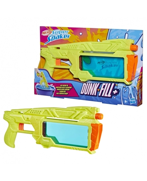 Com o lançador de água Nerf Super Soaker Dunk-Fill+, é muito fácil mergulhar na água! Basta mergulhar o tanque na água para enchê-lo instantaneamente! Sem espera, sem botões, sem tampas - basta afundar e pronto. Comporta até 358 mL de água. Apertar e começar a diversão com jatos de água! O tanque translúcido permite que se saiba quando é hora de mergulhar novamente.
