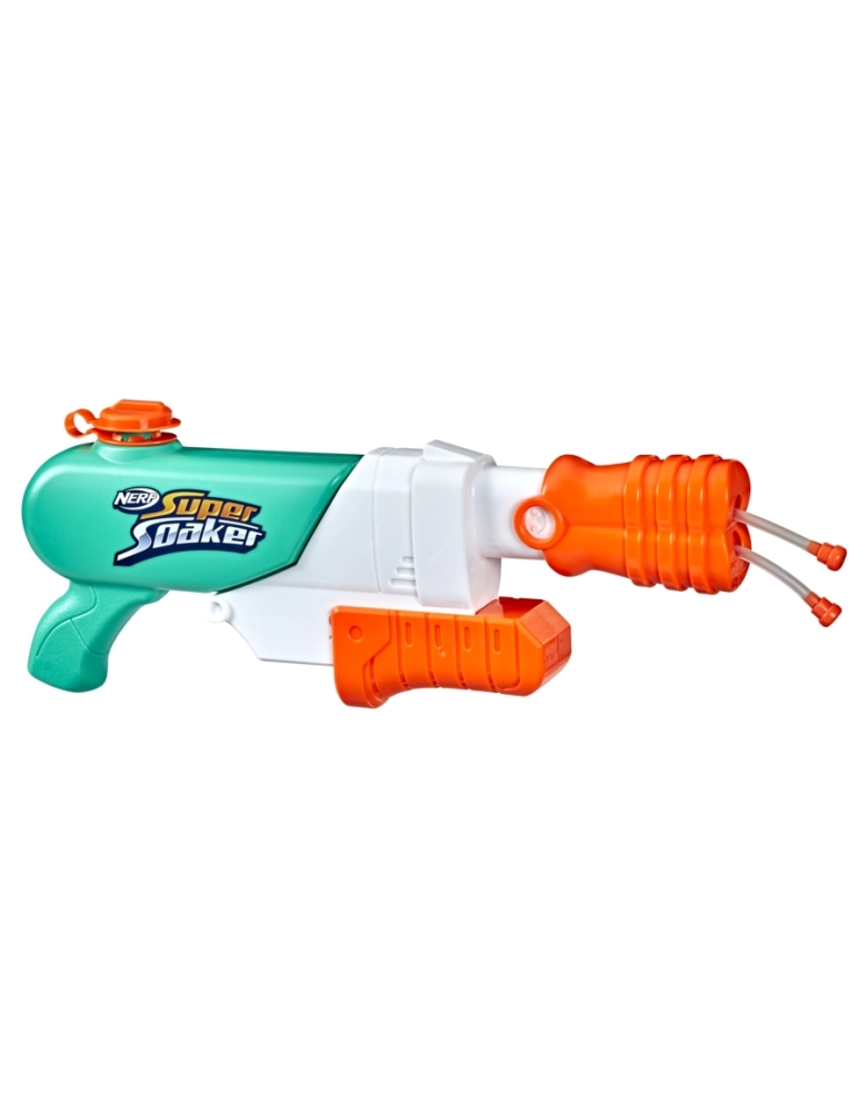 Muita diversão ao lançar jatos de água de formas diferentes com o lançador de água Nerf Super Soaker Hydro Frenzy. Ele tem 2 tubos frontais e bocal ajustável para alternar os jatos de água. É possível lançar 2 jatos paralelos, 2 jatos amplos ou 2 jatos entrelaçados que lançam água em todas as direções. O bocal na frente do lançador pode ser facilmente ajustado para alterar a forma como a água é lançada. Basta abrir a tampa do reservatório e encher, então bombear para frente para trás para lançar jatos. A capacidade do tanque é de 700 mL. Perfeito para brincar no quintal e em parques ou festas em lugares abertos! A marca Nerf Super Soaker é sinônimo de diversão desde 1989 e continua trazendo muita água para brincadeiras ao ar livre entre amigos! Lançadores Nerf Super Soaker, deixando o verão e os dias quentes ainda mais divertidos. Nerf Super Soaker e todas as propriedades relacionadas são marcas registradas da Hasbro.