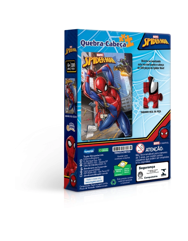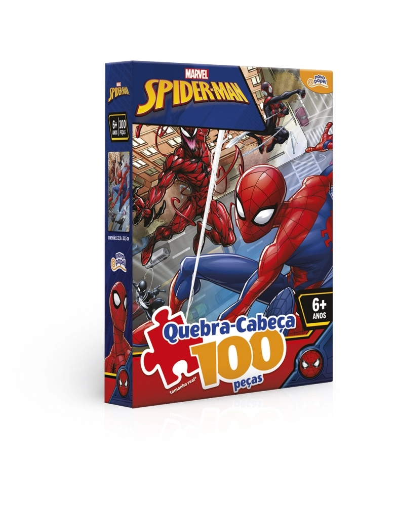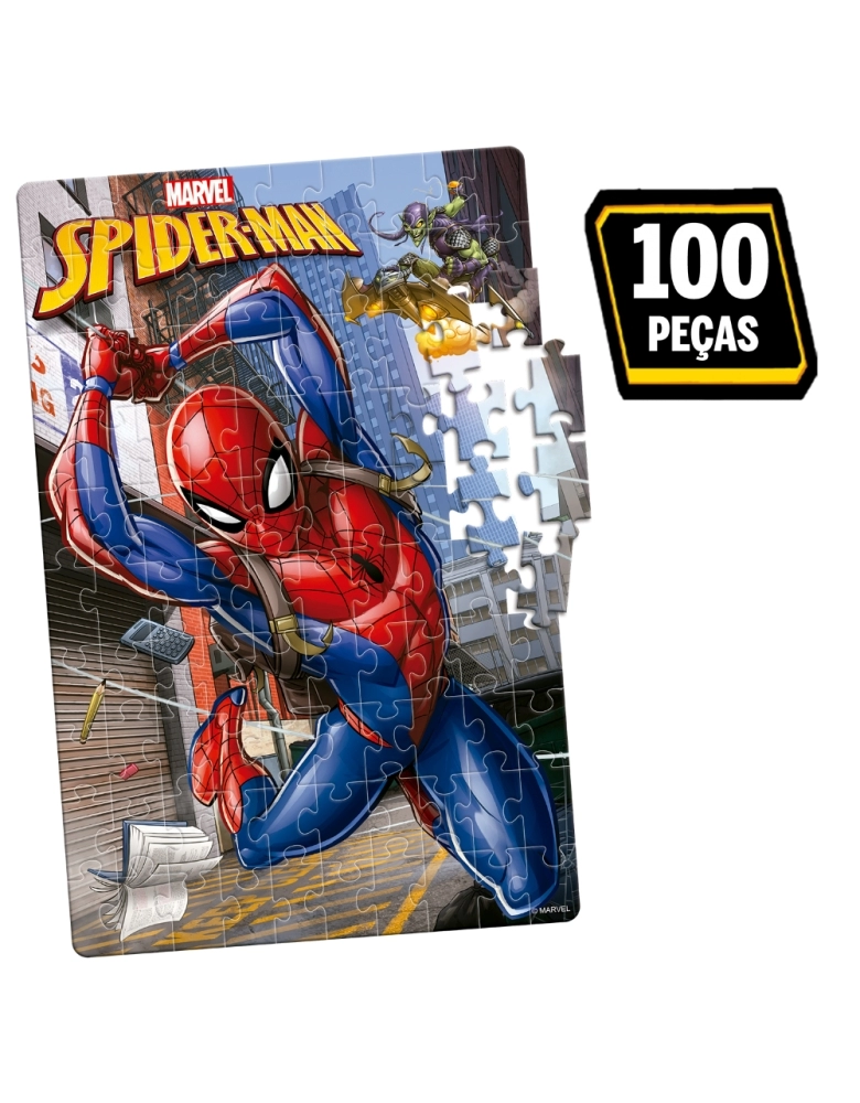 As crianças vão adorar este quebra-cabeça de 100 peças do Spider-Man! Elas vão se divertir entre tentativas e acertos de encaixar umas peças nas outras até formar uma imagem completa!