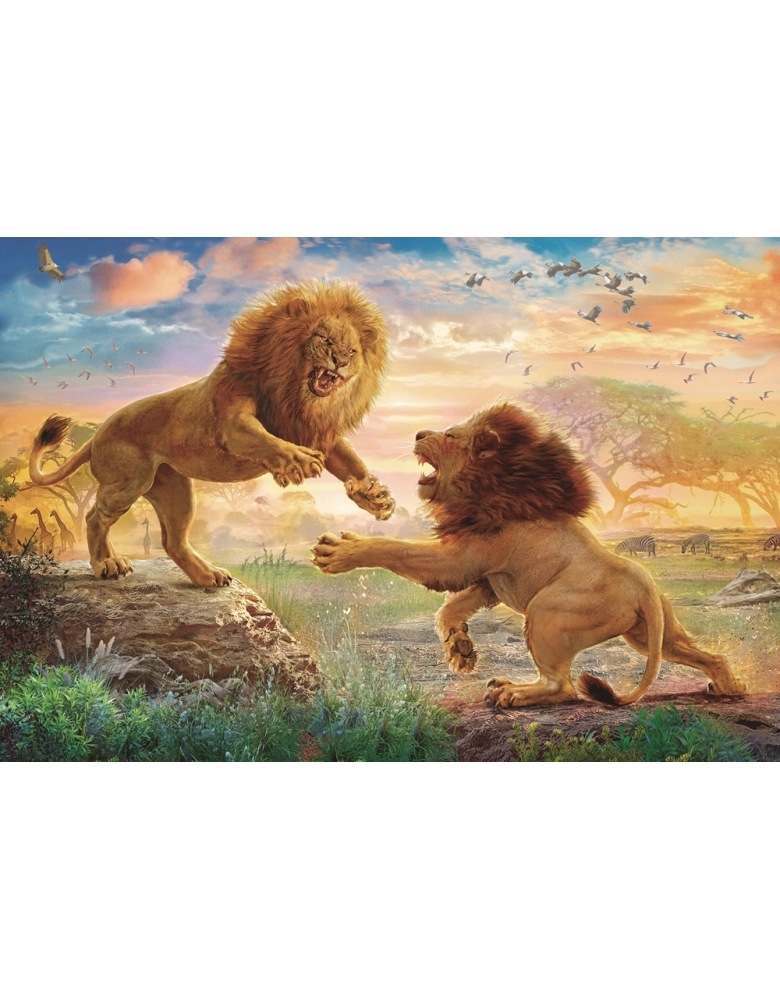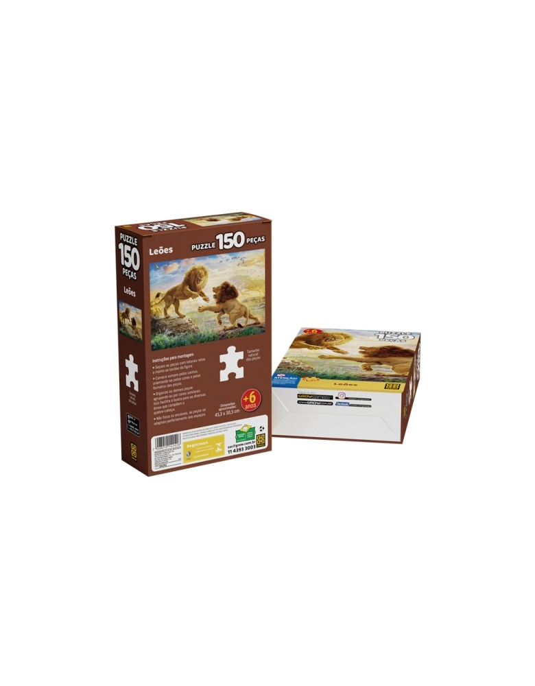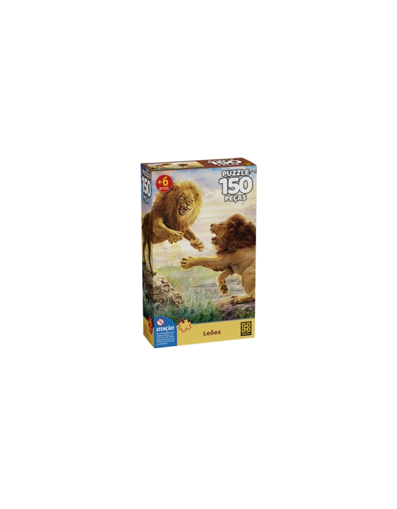 Não deixe de brincar e se divertir com este quebra-cabeça! São 150 peças, para você encaixar até formar uma linda imagem com incríveis leões disputando por seu território.