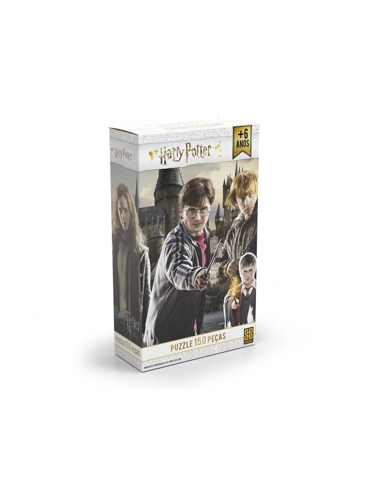 Relembre a mágica do mundo bruxo nesse incrível quebra-cabeça de 150 peças de Harry Potter. Os principais personagens em ação!