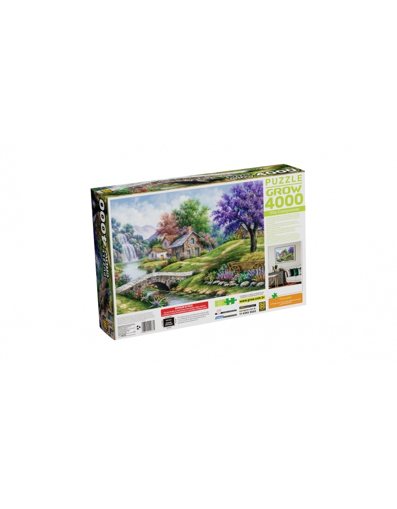 A Grow é pioneira e referência em quebra-cabeças no Brasil, desde 1977. Os melhores materiais são cuidadosamente selecionados sempre buscando qualidade para garantir um encaixe preciso e uma ótima experiência de montagem. Além de um excelente passatempo, de juntar a família e de melhorar a concentração, os Puzzles Grow se tornam lindos objetos de decoração. Ao desligar a mente e tentar relaxar ao máximo, muitas vezes somos levados inconscientemente para um lugar com muita natureza e um silêncio pacificador. Se nos aprofundarmos mais nesse exercício, podemos construir detalhes que tornam o local ainda mais atraente. Uma cachoeira que acompanha lindamente o som dos pássaros, uma casinha modesta, mas extremamente simpática, árvores e flores coloridas etc. Enfim, nossa mente é capaz de criar inúmeras paisagens encantadoras que ajudam a nos trazer paz e tranquilidade, como esta Vila Camponesa que está prestes a tomar forma em suas mãos!