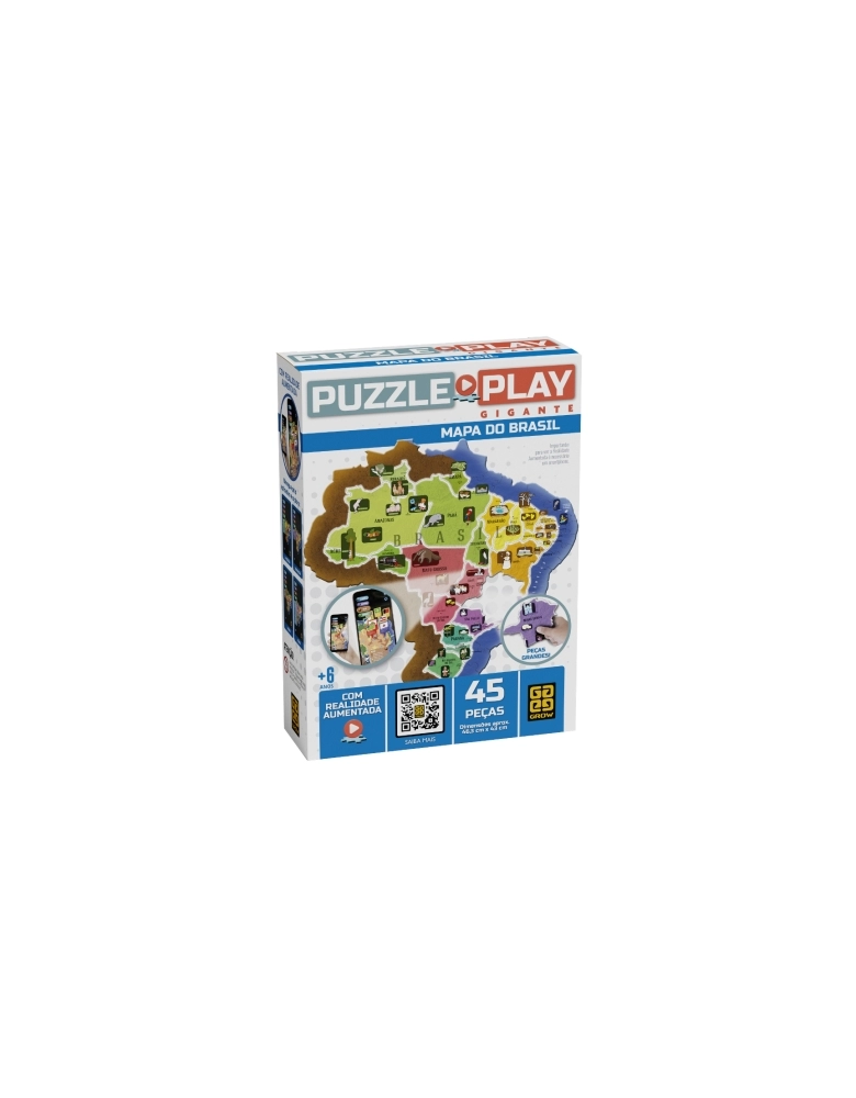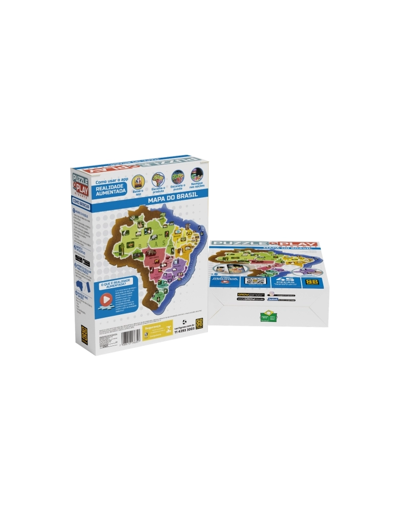 Além de estimular o raciocínio lógico e a concentração, o quebra-cabeça do Mapa do Brasil com realidade aumentada oferece às crianças um jeito divertido e interativo de aprender tudo sobre o nosso pais. O puzzle tem peças com formato dos estados, ilustrações de pontos turísticos e peculiaridades de cada região e um aplicativo de celular ou tablet que facilita à criança visualizar, em três dimensões, os distintos tipos de clima, vegetação, relevo e até a distribuição da população no território brasileiro.