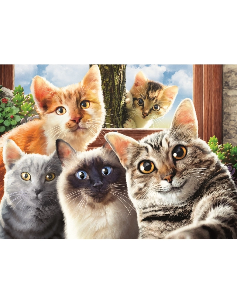 O Puzzle 500 peças Selfie Cats, traz lindos gatinhos posando para uma foto. Com cores vibrantes e detalhes adoráveis, os gatos formam um grupo curioso e cativante, garantindo diversão para os amantes de quebra-cabeças.