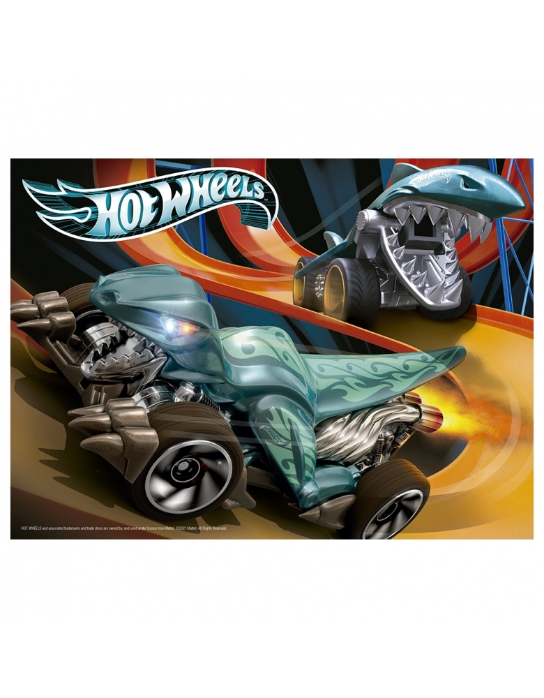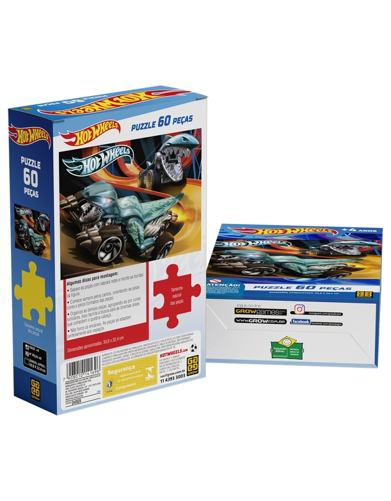 Um quebra-cabeça que mostra a disputa acirrada de dois carros com partes de animais. Quem será que ganha? O Dinossauro ou o Tubarão?