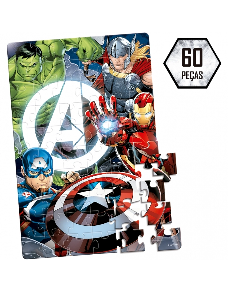 Divirta-se montando este incrível quebra-cabeça de 60 peças dos Vingadores!