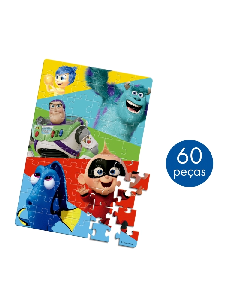 Divirta-se montando este incrível quebra-cabeça de 60 peças dos personagens mais icônicos da Pixar!