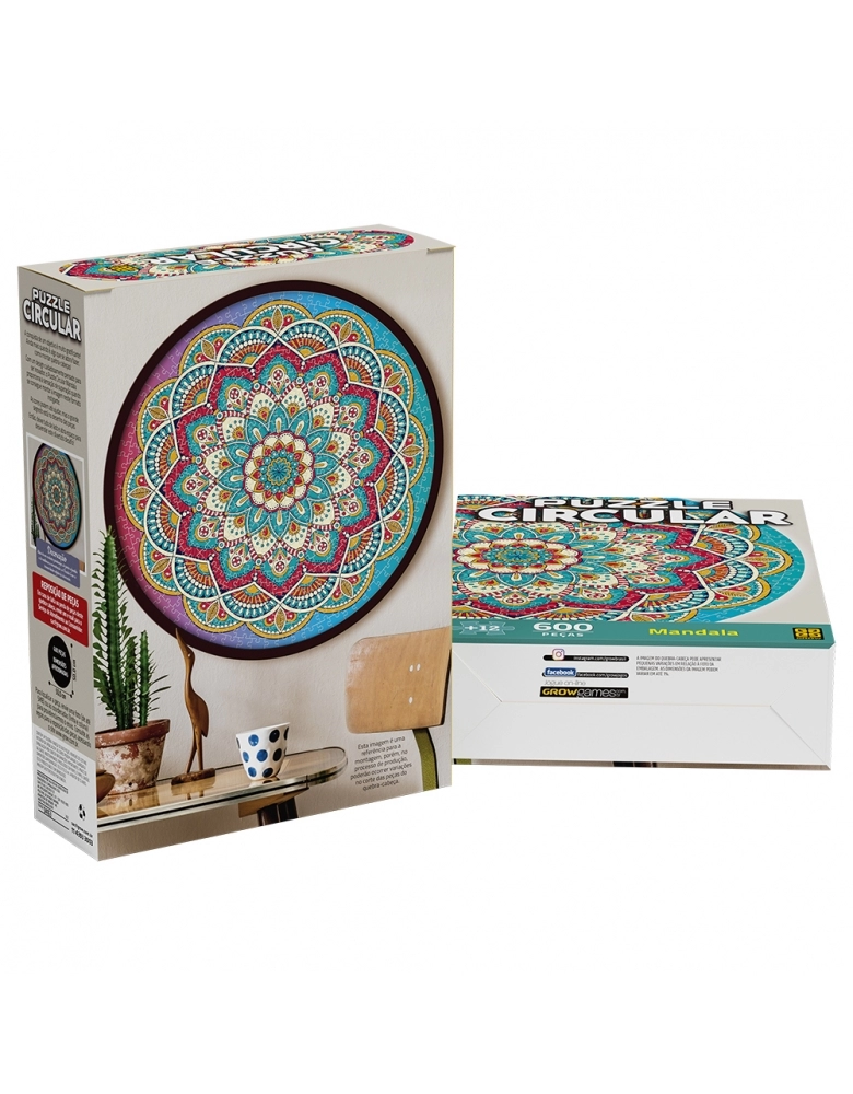 O puzzle Circular Mandala possui um design cuidadosamente pensado para ser inovador, proporcionando a sensação de superação quando se consegue montar a imagem neste formato instigante!