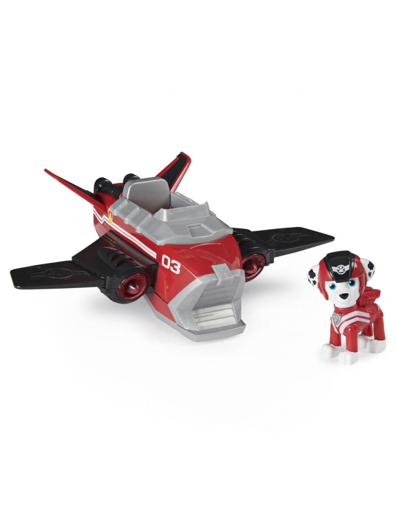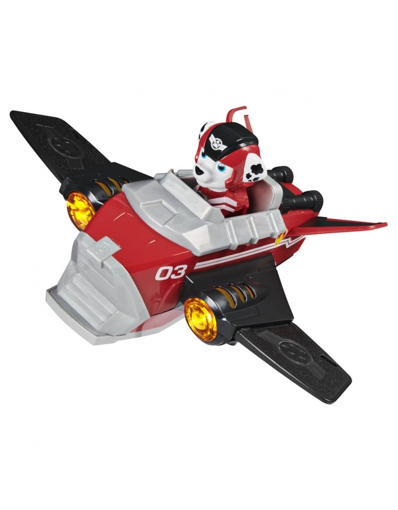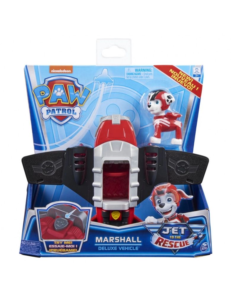 Vá ao resgate com Marshall e seu veículo Deluxe em transformação! Este veículo apresenta detalhes realistas, acentos translúcidos, luzes e sons. Trocando seu uniforme de resgate por um traje de vôo vermelho e capacete, Marshall (figura incluída) dispara! Quando chegar a hora de um resgate, coloque Marshall ao volante de seu veículo de luxo e aperte o botão superior para fazê-lo se transformar. Conforme o jato de Marshall muda do modo furtivo para o modo de resgate, partes das asas saltam, ativando luzes e sons emocionantes! Seções translúcidas do jato se iluminam, assim como no show! Para ouvir mais sons, pressione o botão a qualquer momento. Após uma missão de resgate bem-sucedida, coloque as peças destacadas de volta no lugar e patrulhe secretamente o céu noturno. Leve seu patrulheiro para o céu com seu veiculo avião e crie aventuras e resgates inesqueciveis.