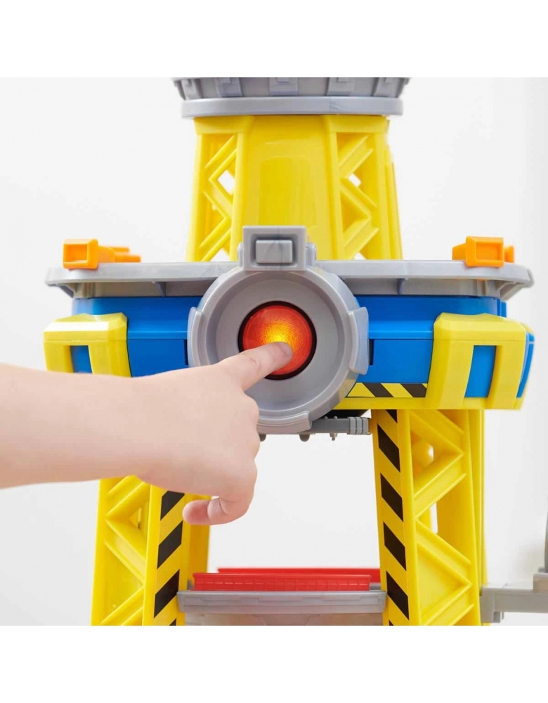 Aperte o botão vermelho gigante na frente da torre para ativar as luzes e ouvir sons e frases do desenho animado Rubble & Crew!