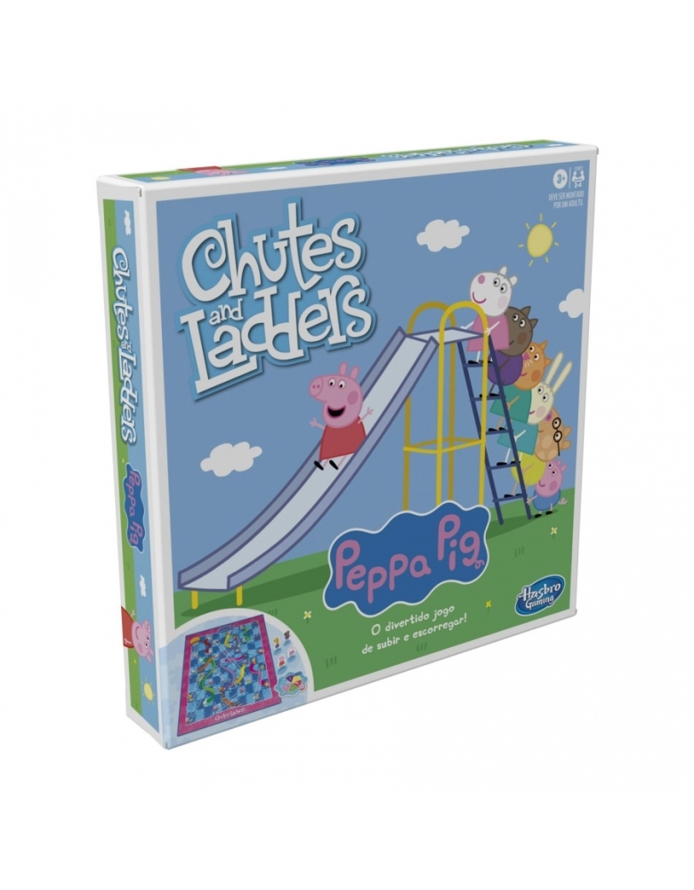 JOGO DE TABULEIRO COM TEMA DE PEPPA PIG: Muita diversão com Peppa Pig e seus amigos! Esta versão do jogo de tabuleiro Chutes and Ladders é inspirada na Peppa Pig. É um jogo divertido para crianças a partir dos 3 anos; INCLUI 4 PEÕES: É uma aventura de subir e escorregar com os personagens Peppa Pig, Gerald Girafa, Susie Ovelha e Danny Cão; TABULEIRO COLORIDO: A linda arte do tabuleiro traz Peppa Pig e seus amigos como Rebecca Coelho e muito ; NÃO PRECISA LER: É uma ótima opção para crianças que ainda não aprenderam a ler. Os números no tabuleiro são uma ótima oportunidade para praticar os numerais; JOGO PARA CRIANÇAS: É um jogo rápido para brincar em família ou com amigos. É um excelente presente de aniversário ou outras celebrações para crianças acima de 3 anos.