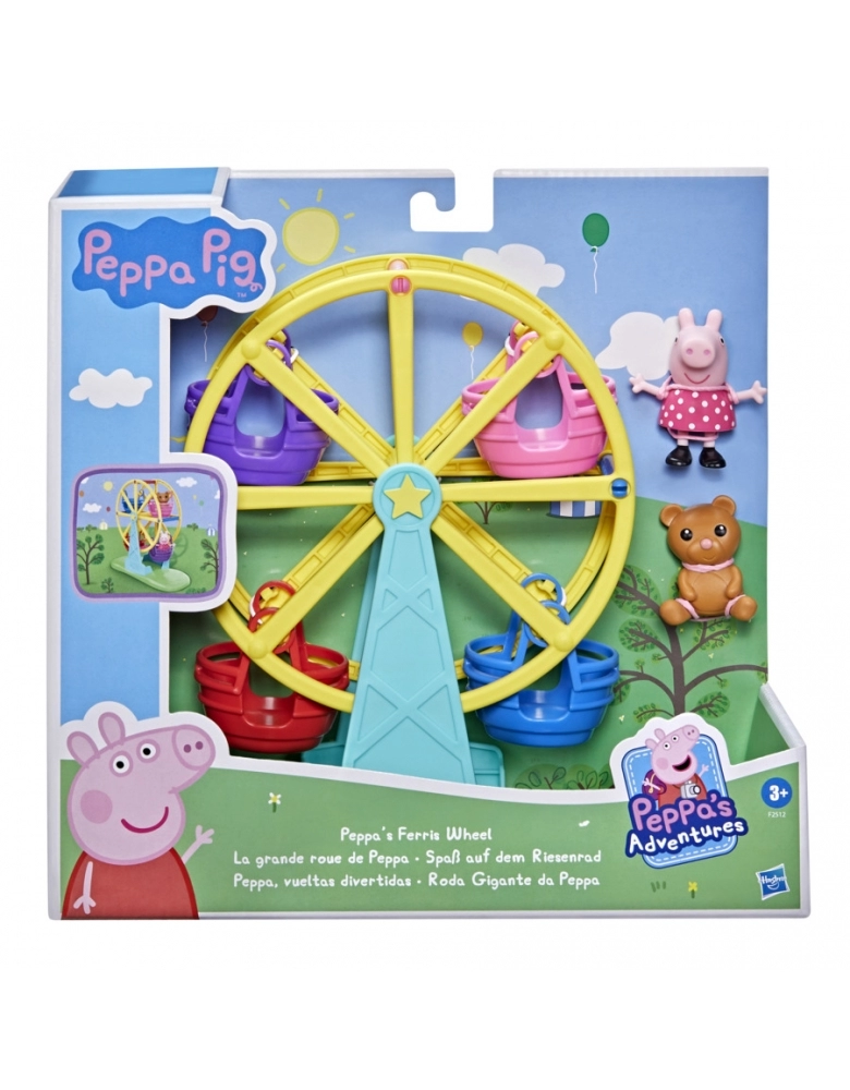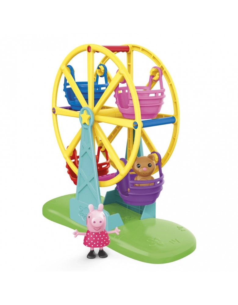 Diversão no parquinho com a Peppa! Com o brinquedo Peppa Pig Roda gigante da Peppa, as crianças podem imaginar toda a diversão de passar um dia no parque com a Peppa. Basta colocar a figura em um dos cestos e girar a roda gigante manualmente. A figura articulada vem com um vestido de bolinhas. Além disso, a figura traz um ursinho de pelúcia. A roda gigante da Peppa é compatível com outras figuras de 7,5 cm do mundo da Peppa Pig (vendidas separadamente e sujeitas à disponibilidade). Excelente para crianças e fãs a partir dos 3 anos.