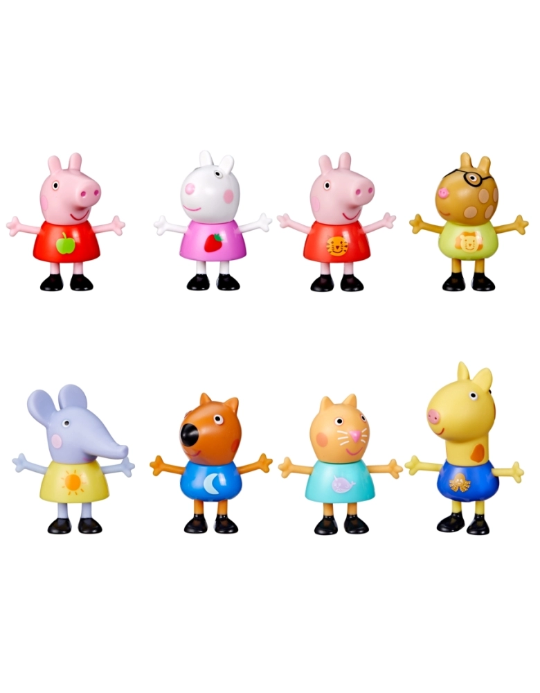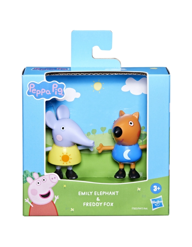 Muita diversão com o kit de amigos da Peppa Pig. Cada kit vem com 2 figuras de 7,5 cm inspiradas no desenho Peppa Pig (Kits vendidos separadamente. Sujeitos à disponibilidade). Cada personagem vem com um design de roupa diferente. A linha traz Peppa Pig, Emily Elefante, Danny Cão e muito mais.