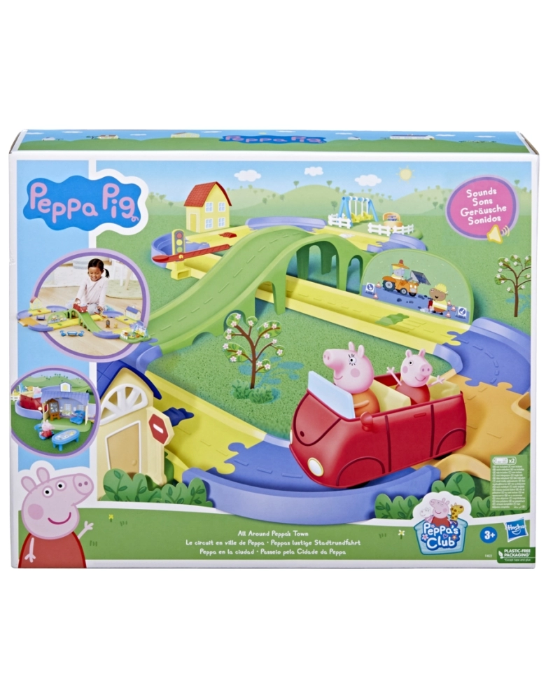 O brinquedo Passeio pela Cidade da Peppa é uma maneira divertida para as crianças a partir de 3 anos explorarem o mundo da Peppa com a ajuda de histórias narradas. Ele vem com um carro vermelho da Mamãe Pig e uma figura removível da Peppa. As crianças colocam a figura da Peppa no carro da Mamãe Pig e o empurram pela pista. Mamãe Pig e Peppa podem passear na casa, na escola ou no parquinho! E a cada visita, o narrador começa uma história. As crianças podem seguir as instruções do narrador e ir para um local específico ou podem escolher seu próprio caminho para ouvir suas histórias preferidas. Excelente presente de aniversário, natal ou outras celebrações para crianças e fãs da Peppa Pig a partir dos 3 anos.