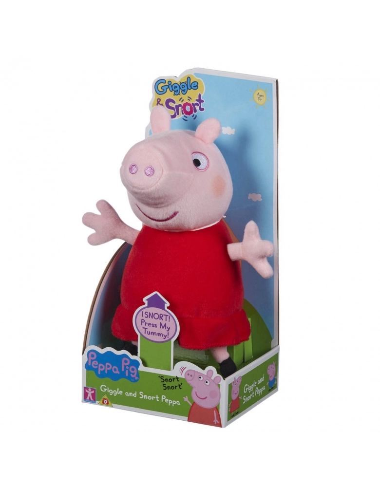 Este super adorável brinquedo macio Peppa Pig vai deixar sua pequena rindo de alegria enquanto ela bufa e bate papo! Aperte a barriga de Peppa e observe enquanto ela enruga o focinho, ri e diz frases exclusivas, assim como no programa de TV! Giggle & Snort Peppa é feita do pelúcia mais macia, com estilo clássico Peppa Pig, e mede 20cm de altura.