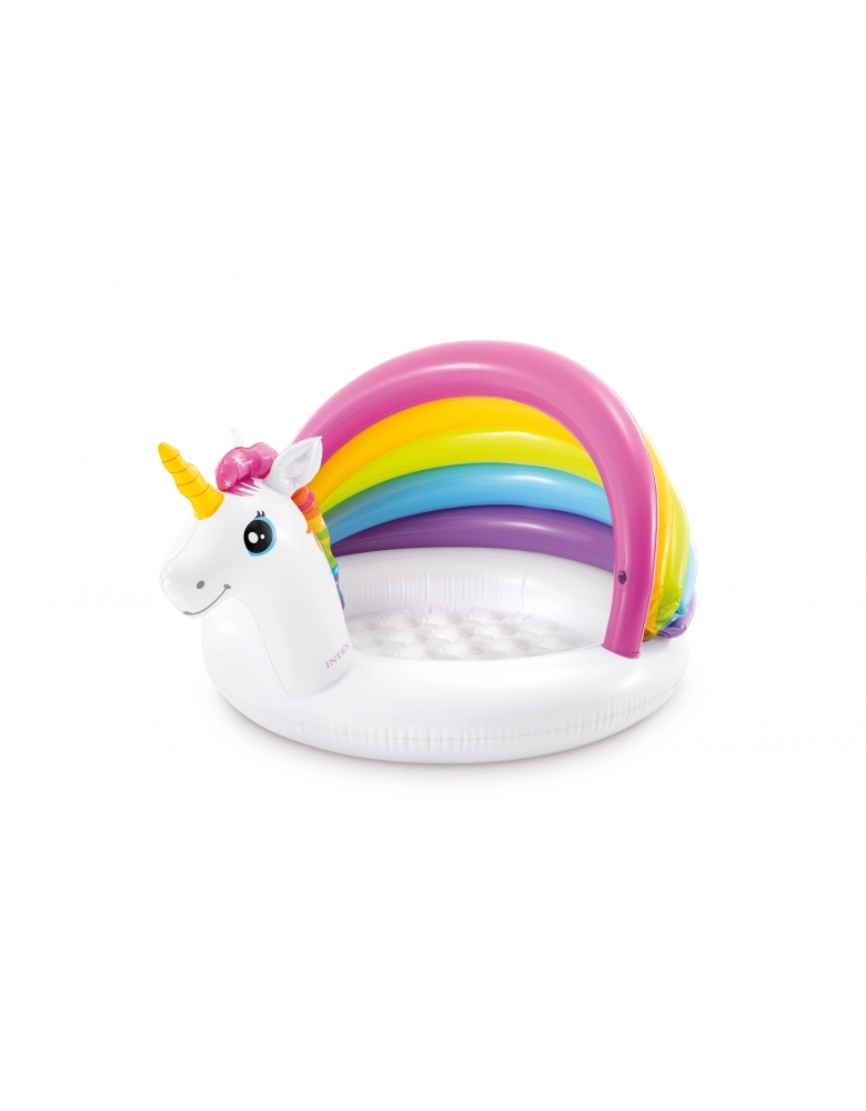 A piscina inflável para bebês com guarda-sol é o espaço ideal para seu bebê passar o verão fresco e protegido dos raios solares enquanto brinca e se diverte entre arco-íris e unicórnios.
